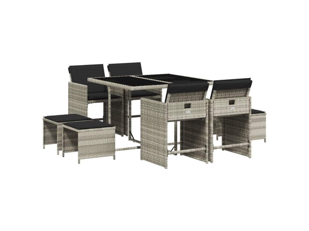 9dílný zahradní jídelní set s poduškami světle šedý polyratan 3211139