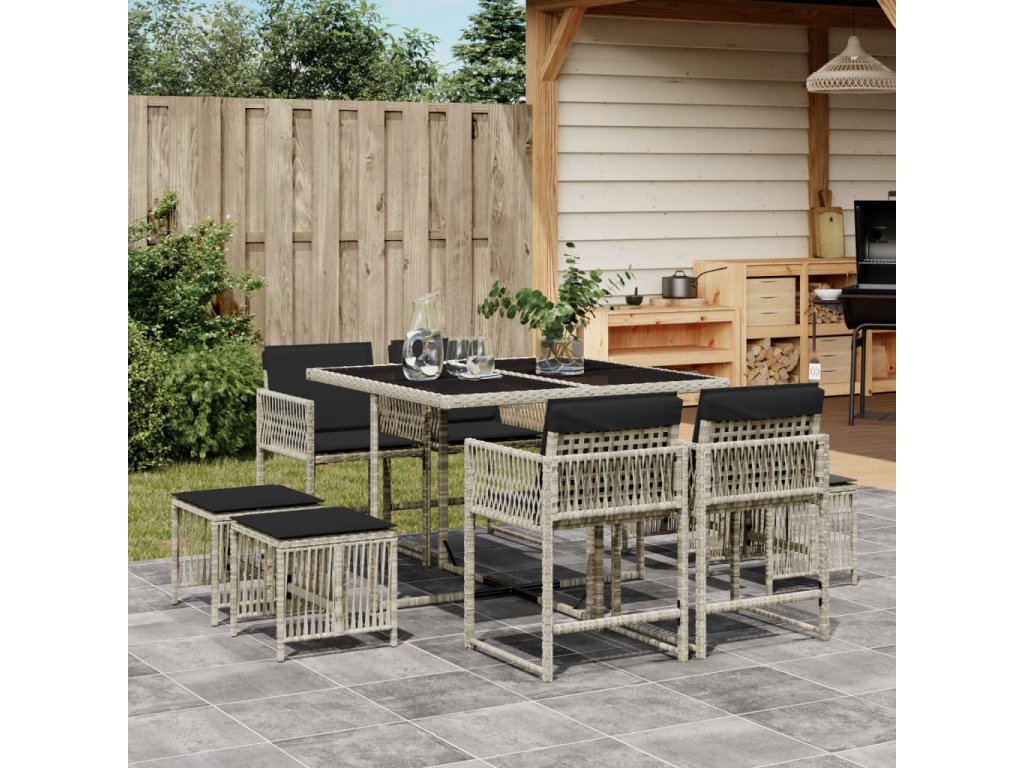 9dílný zahradní jídelní set s poduškami světle šedý polyratan 3211499
