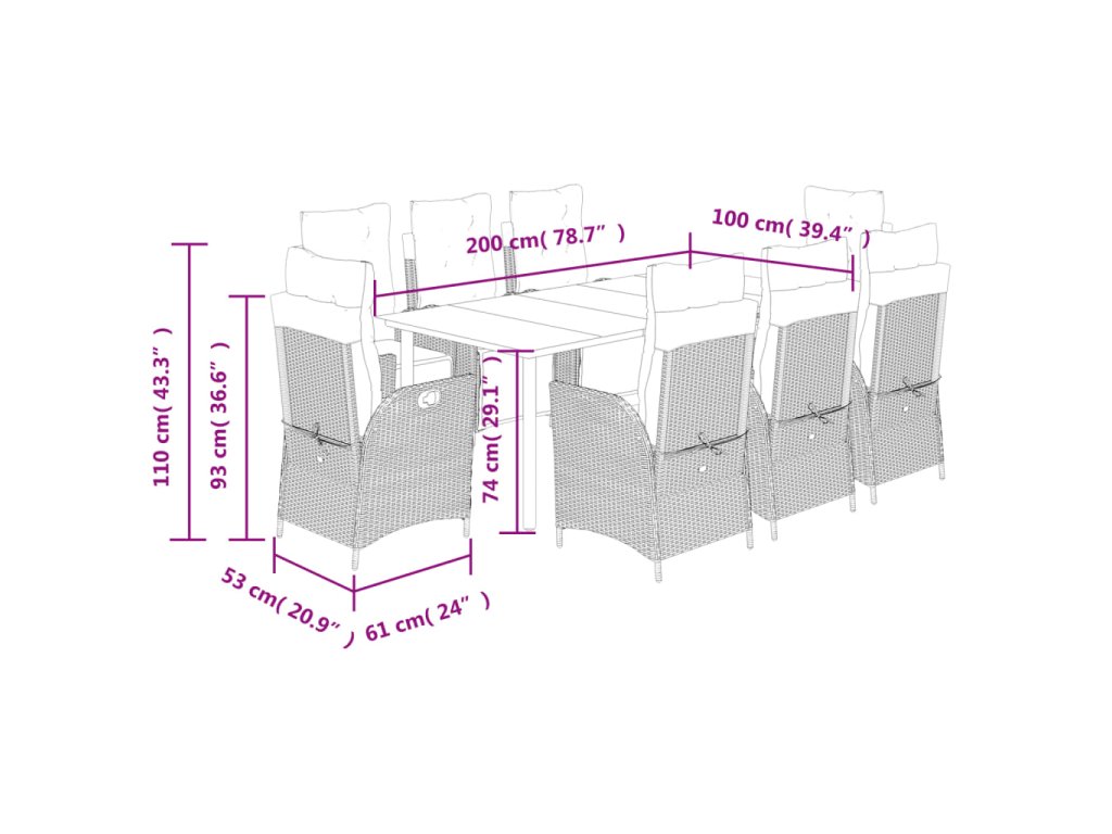 9dílný zahradní jídelní set s poduškami světle šedý polyratan 3213475