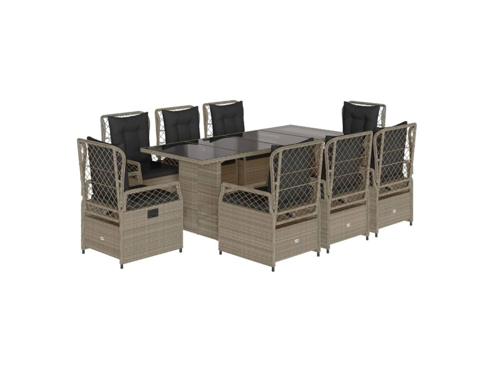 9dílný zahradní jídelní set s poduškami světle šedý polyratan 3262941