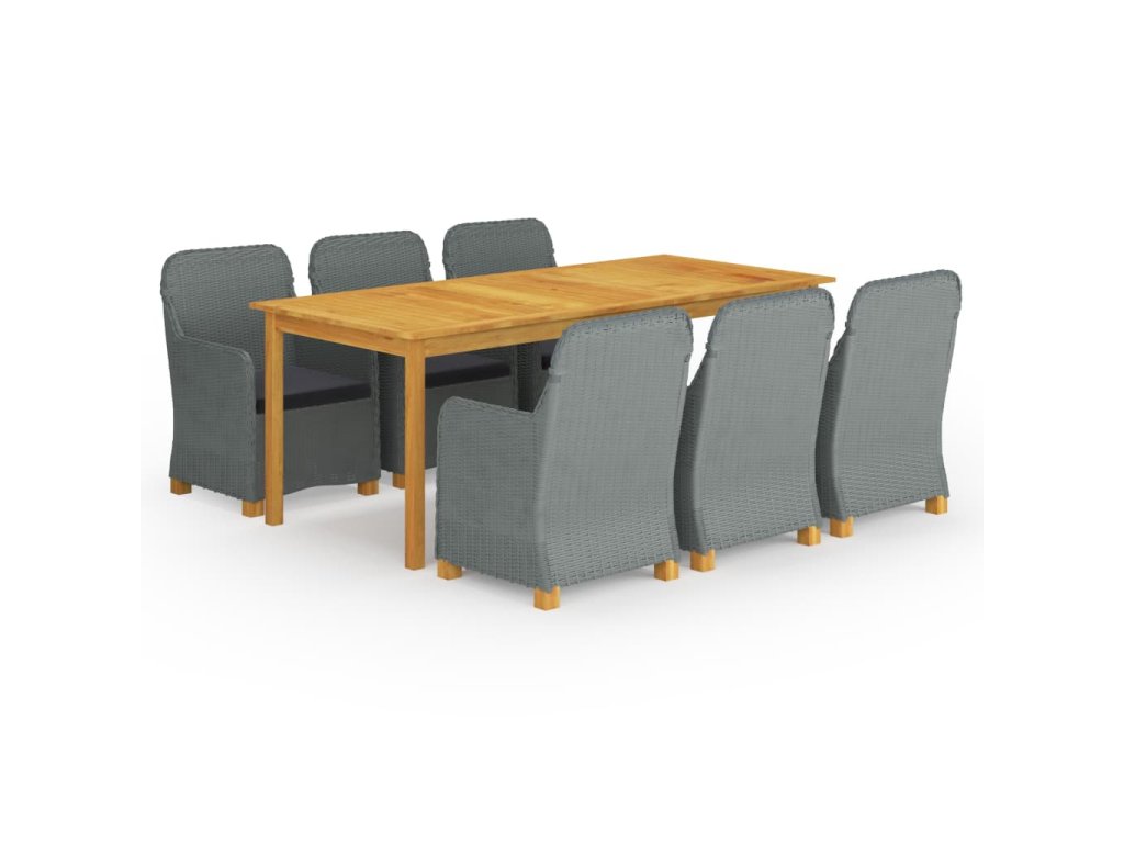 Jídelní stůl je zhotovený z masivního akáciového dřeva s olejovaným povrchem, takže je stabilní, odolný a nenáročný na údržbu. Zahradní židle mají rám z práškově lakované oceli, opletený kulatým PE ratanem, který výborně vzdoruje klimatickým vlivům. Dlouho vám proto vydrží a snadno je očistíte. Hustě polstrované podušky vám při odpočinku zaručí mimořádný komfort. Jejich potahy jsou opatřené zipem, abyste je mohli bez námahy stáhnout a oprat. Nohy z masivního akáciového dřeva přispívají k lepší stabilitě a delší životnosti. Vzhledem k jejich lehké konstrukci lze jídelní židle jednoduše přesouvat, kam potřebujete.