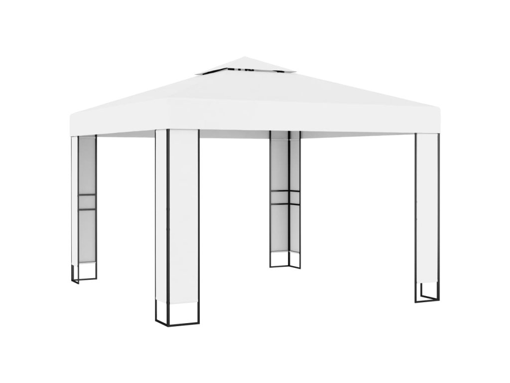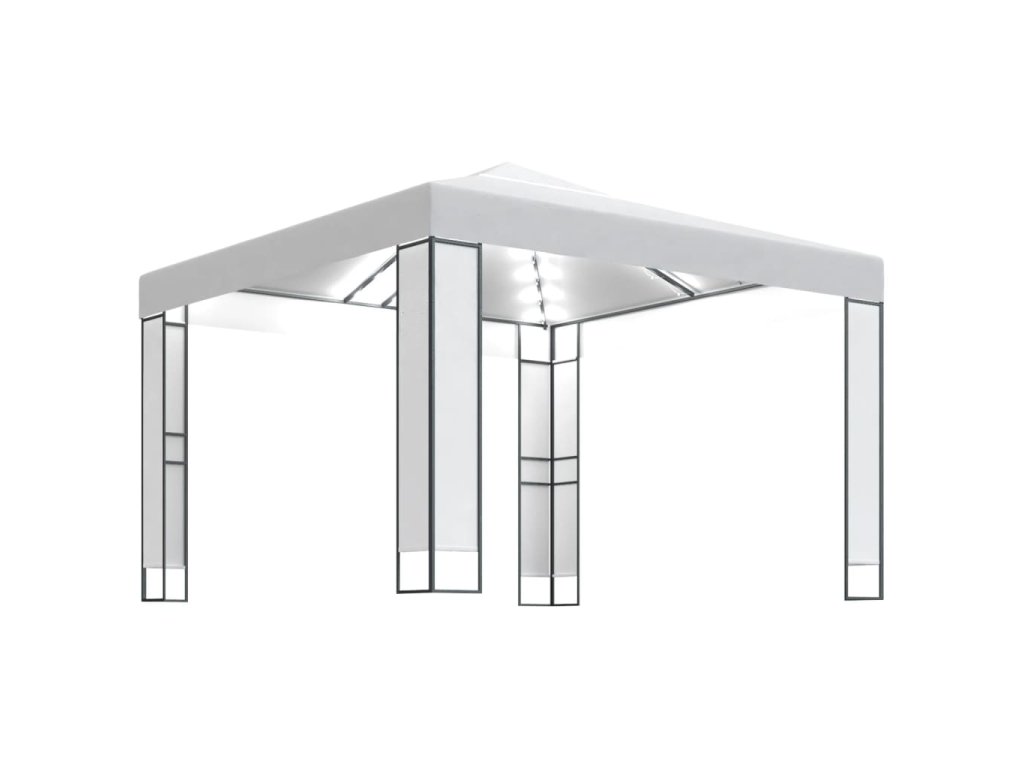 Altán s dvojitou stříškou a světelnými LED řetězy 3 x 3 m bílý 3070302