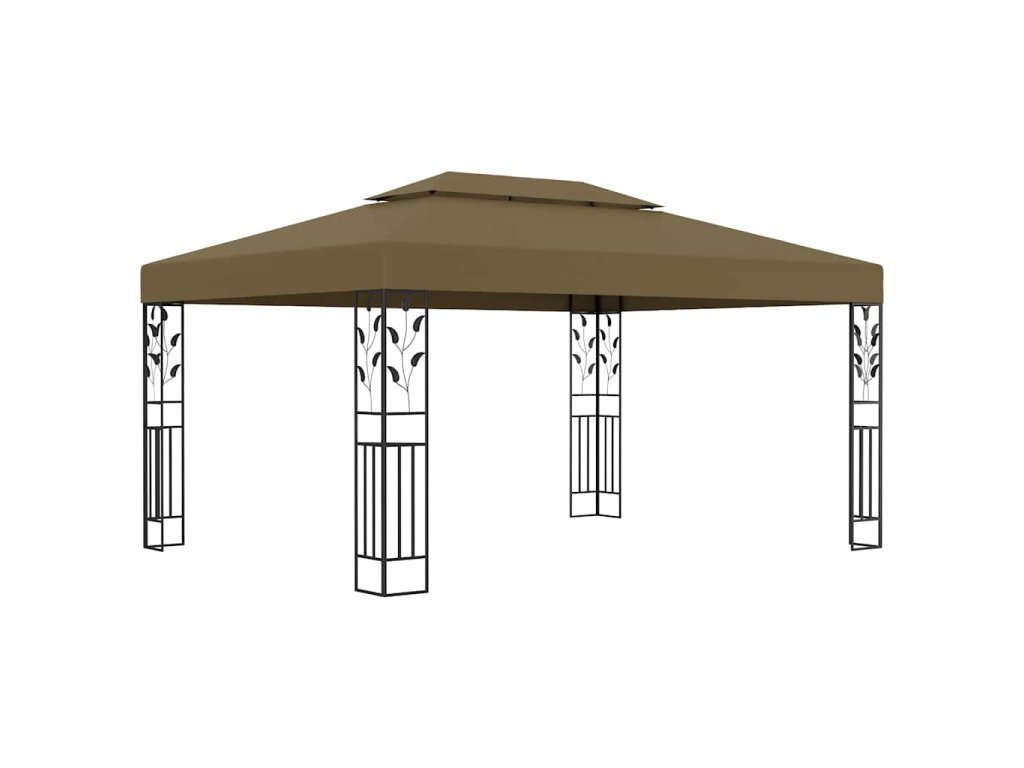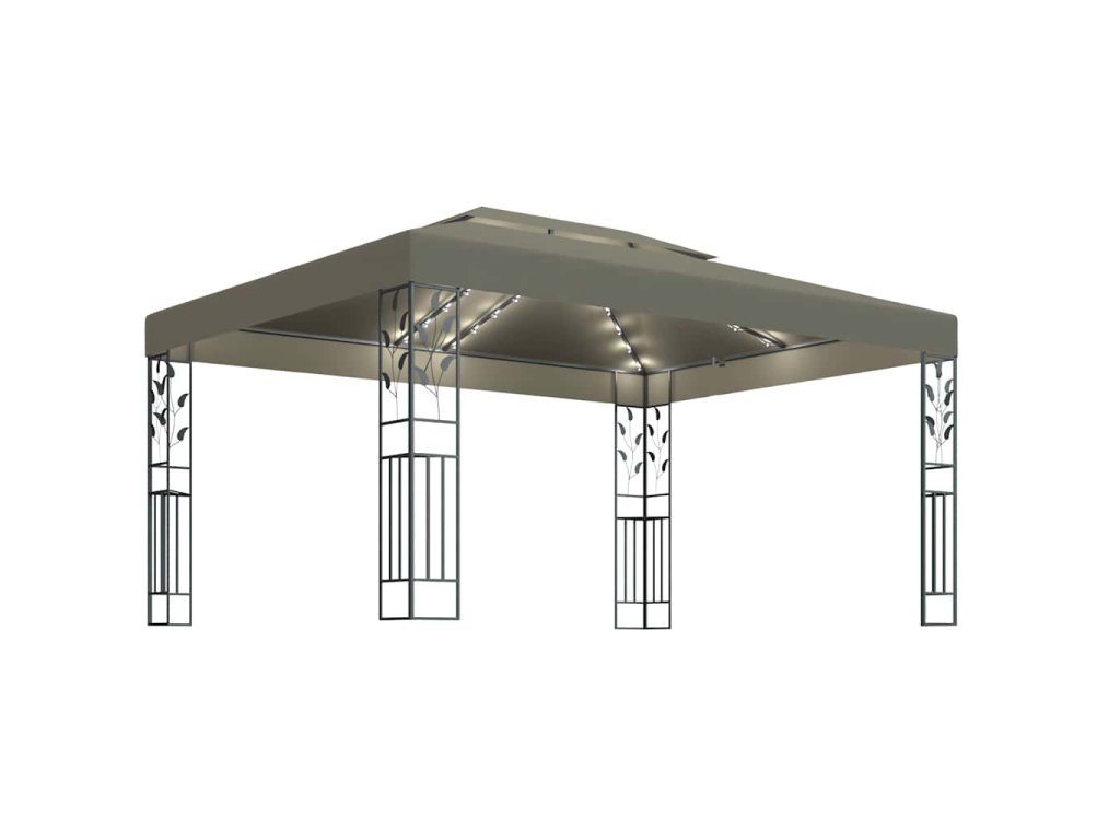 Altán s dvojitou stříškou a světelnými LED řetězy 3 x 4 m taupe 3070313