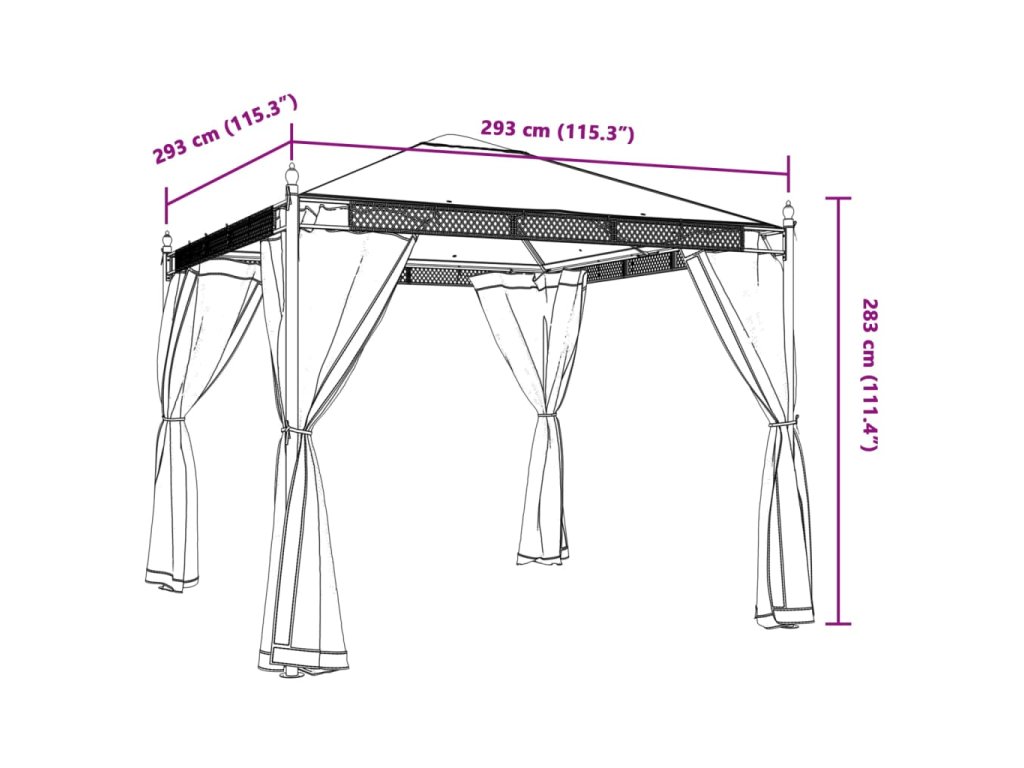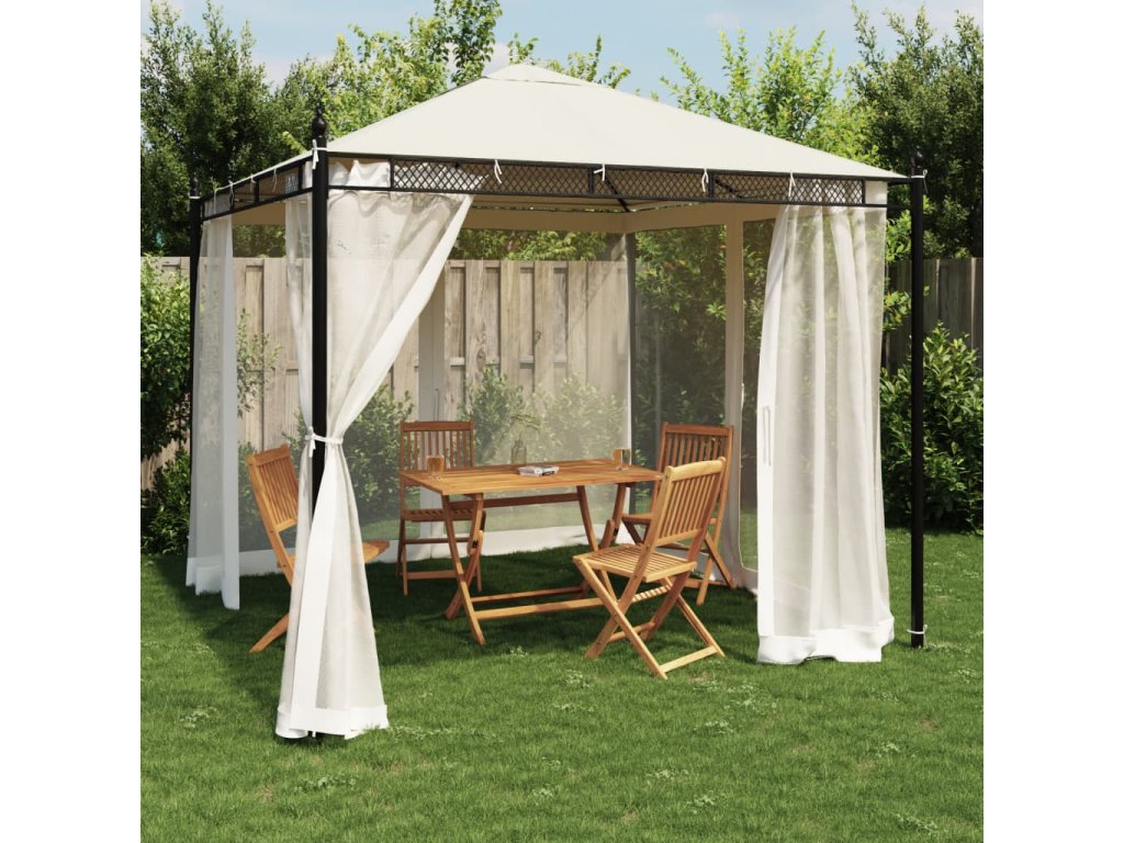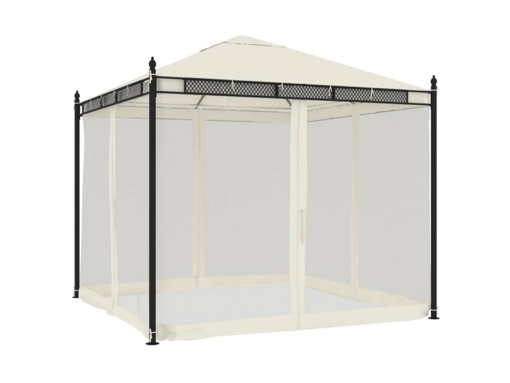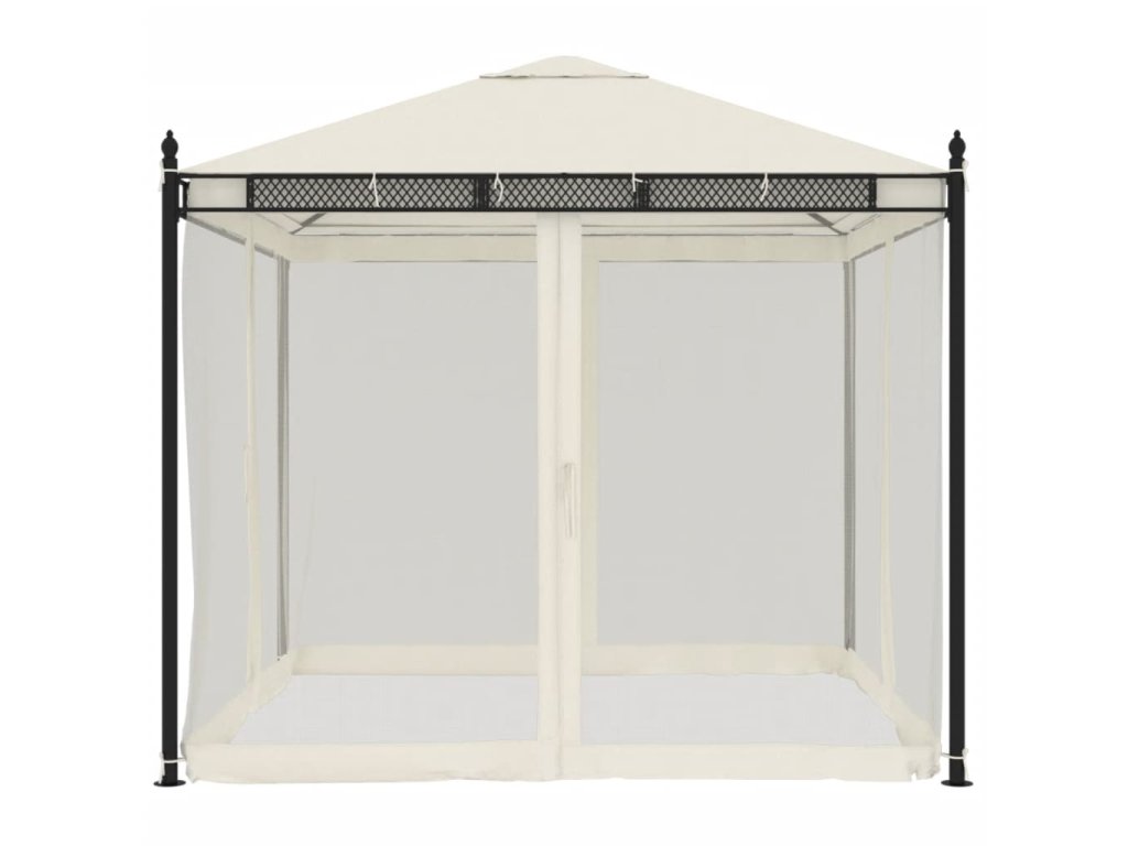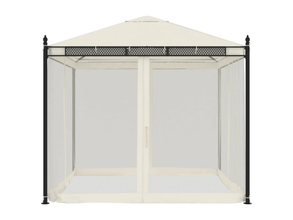 Altán se síťovanými stěnami krémový 2,93 x 2,93 m ocel 368434