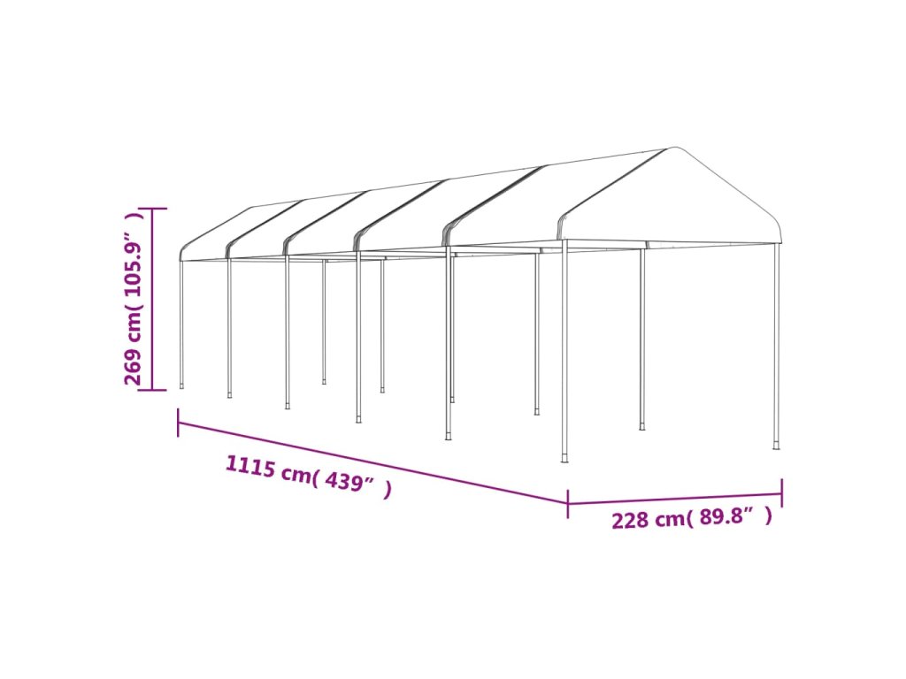Altán se střechou bílý 11,15 x 2,28 x 2,69 m polyethylen 3155505