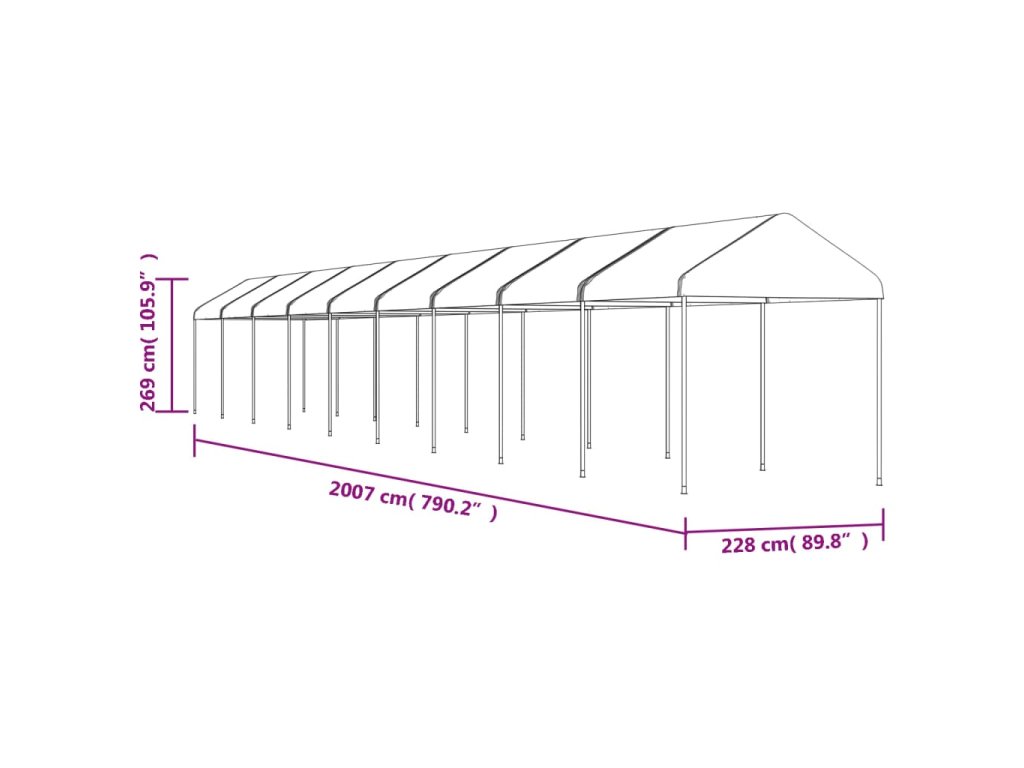 Altán se střechou bílý 20,07 x 2,28 x 2,69 m polyethylen 3155509