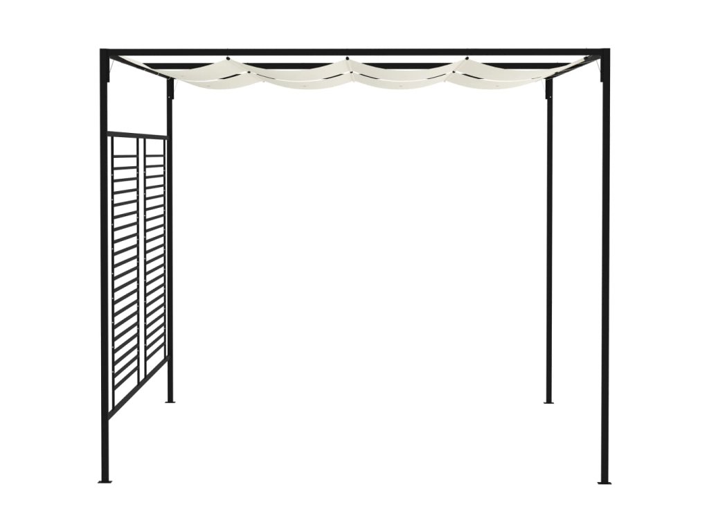 Tento přístřešek má pevnou železnou konstrukci, je tudíž dostatečně bytelný a odolný pro venkovní použití. Zatahovací střecha vás ochrání před škodlivými UV paprsky a také před deštěm, takže si můžete bezstarostně užít jakoukoli venkovní akci.