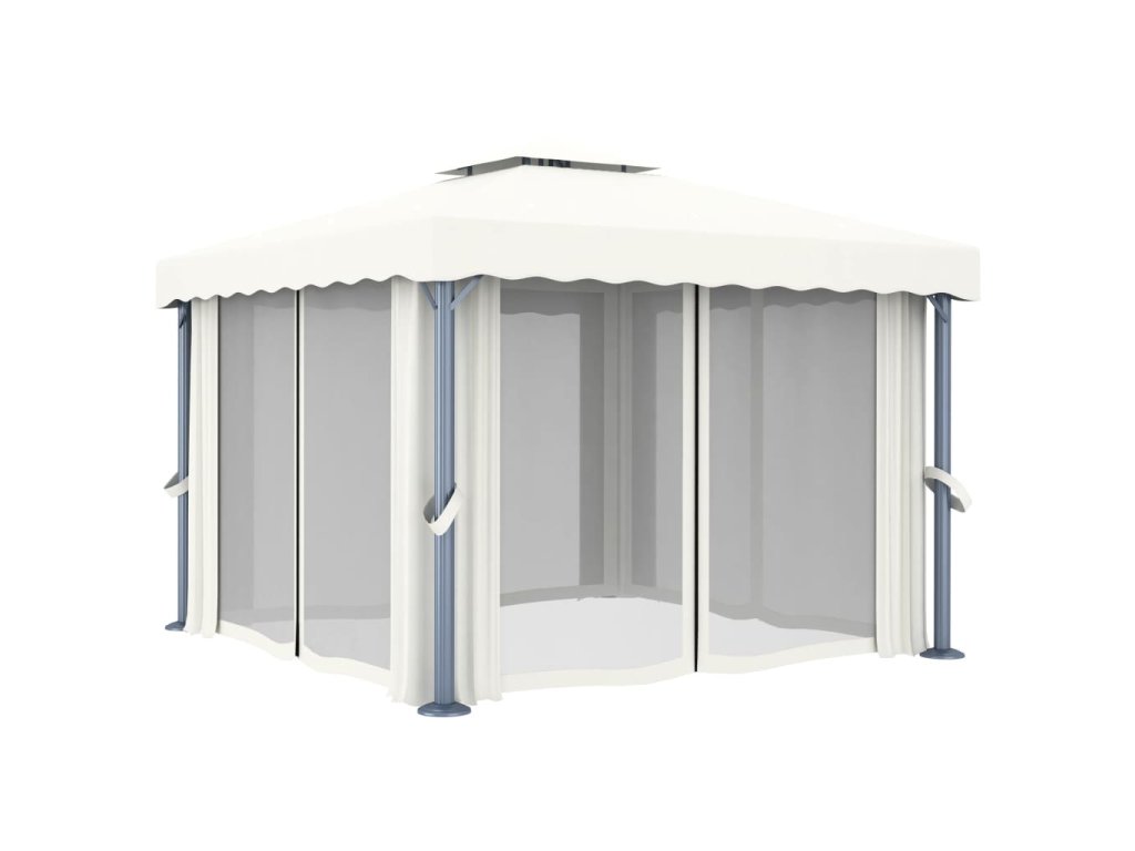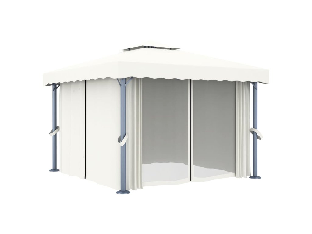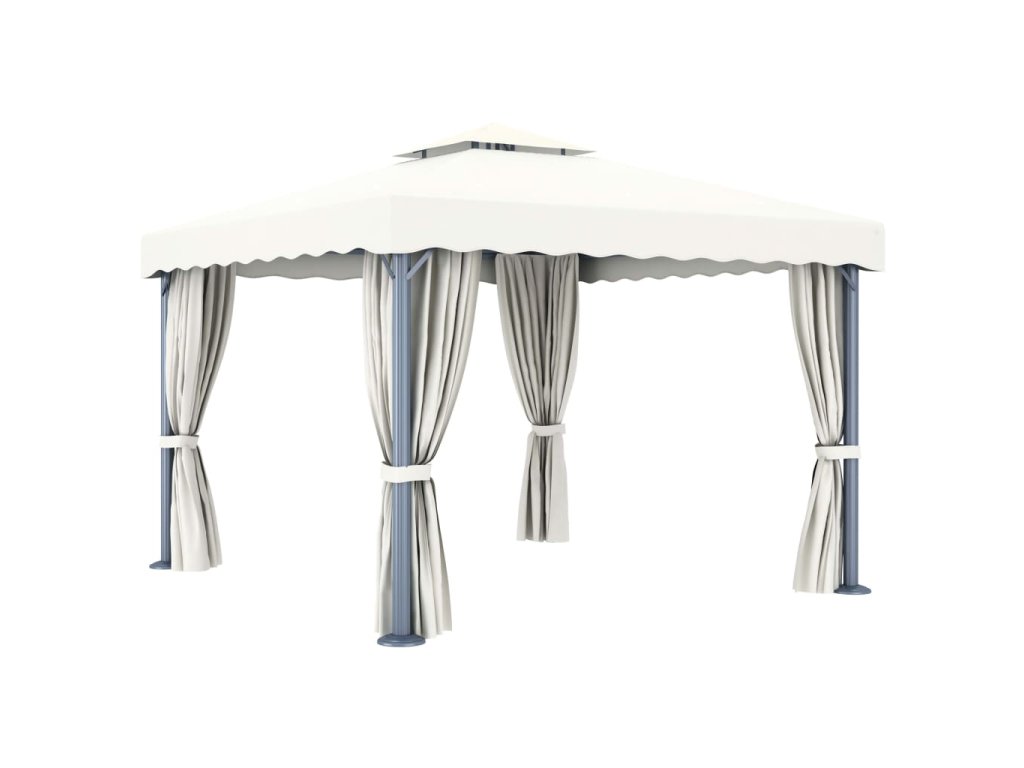 Altán se závěsy 3 x 3 m krémově bílý hliník 3053377