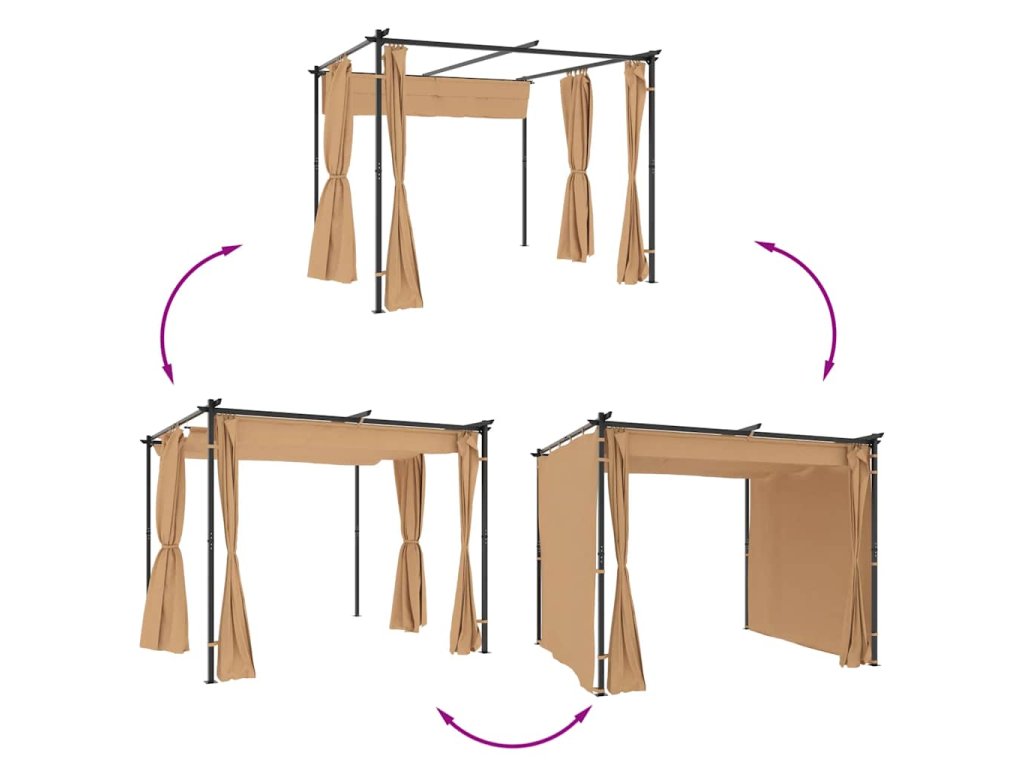 Altán se závěsy 3 x 3 m taupe ocel 313897
