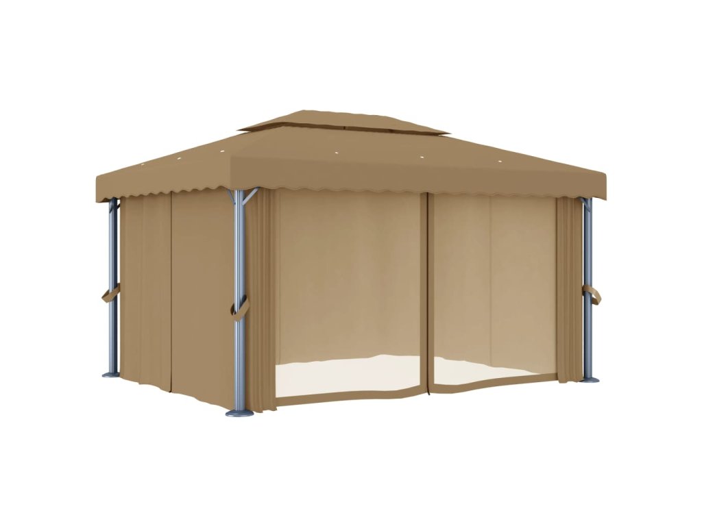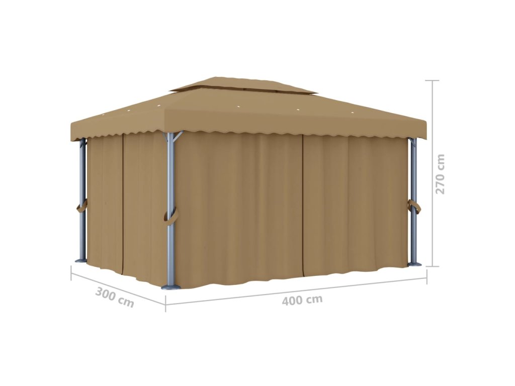 Altán je navržený tak, aby vám poskytl příjemný chládek na zahradních oslavách, rodinných piknicích či domácích grilovačkách nebo jiných sešlostech. Rám tvoří hliníková tyč a podpěrná trubka z práškově lakované oceli, celá konstrukce je tudíž mimořádně pevná a odolná. Stříška a boční stěny jsou ušité z kvalitní polyesterové látky potažené vrstvou PA, takže vás účinně ochrání před škodlivým zářením i lehkým deštěm. Šikovně vymyšlená dvojitá střecha umožňuje hojné proudění vzduchu. Součástí party stanu jsou i závěsy a ochranné sítě, které vám poskytnou větší soukromí a zároveň vás ochrání před komáry a dalším otravným hmyzem. Pro snadné připevnění slouží poutka na suchý zip.
