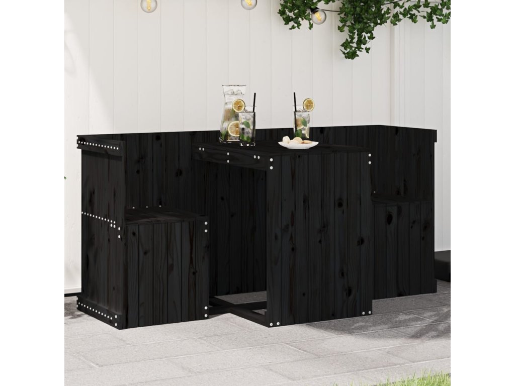 Balkonový set 2místný černý masivní borové dřevo 825062