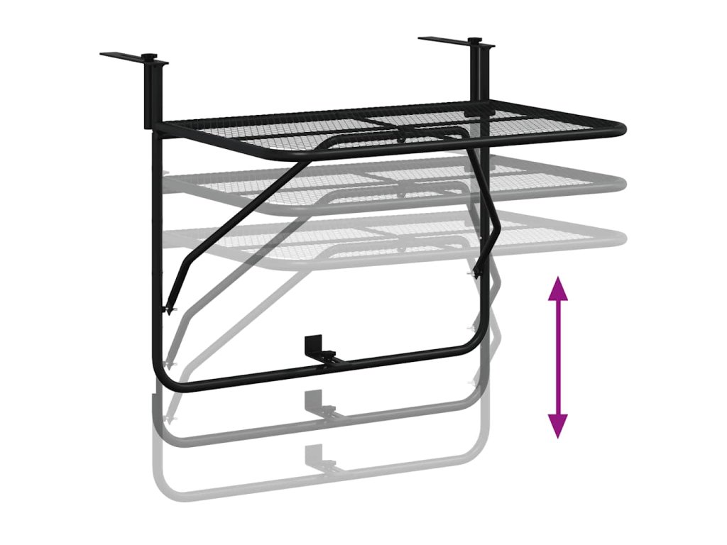 Odkládací stolek je vyrobený z robustní oceli, je klimaticky odolný a stabilní. Jeho pletivový design a černá e-coating povrchová úprava váš balkon zkrášlí industriálním šarmem. Stolek je také sklopný, takže snadno ušetříte místo, když stolek právě nepoužíváte.