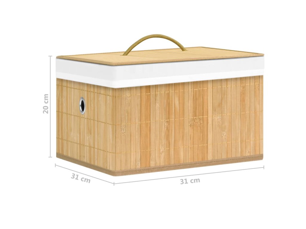 Úložné boxy jsou zhotovené z bambusu a tkané textilie s dlouhou životností. Každý box nabízí spoustu místa k ukládání šátků, ponožek, spodního prádla atd. Když je zrovna nepoužíváte, dají se úložné boxy snadno složit, aby vám zbytečně nepřekážely. Každý z úložných boxů je vybavený praktickým kovovým očkem, který usnadňuje vytažení boxu ze skříně a také mu dodává elegantní šarm.