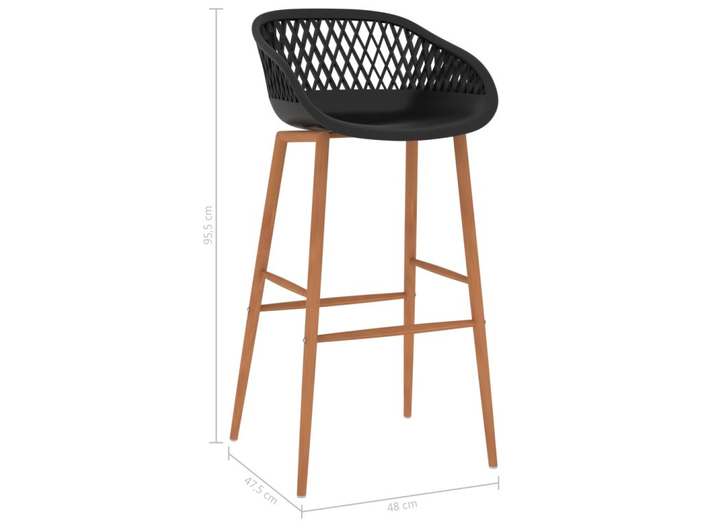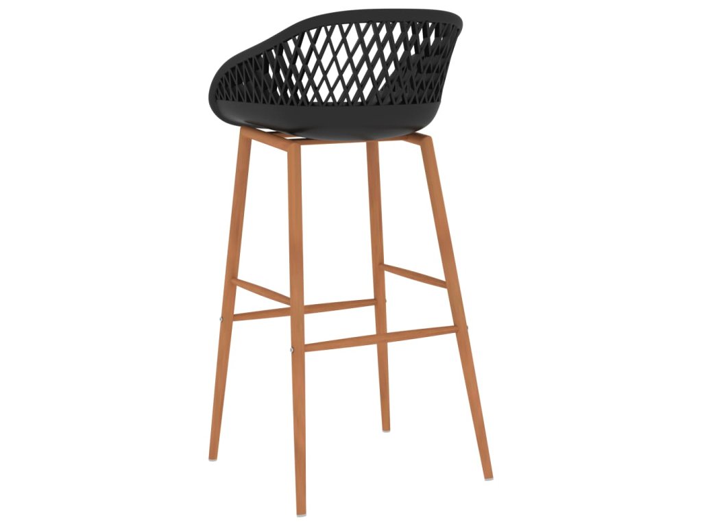 Barové židle mají ergonomicky tvarované sedadlo s integrovaným nízkým opěradlem a vyplétaným vzhledem. Jsou vyrobené z robustního PP materiálu a stojí na pevných kovových nohách s transférovým potiskem s dřevěným vzhledem, takže jsou robustní a odolné.
