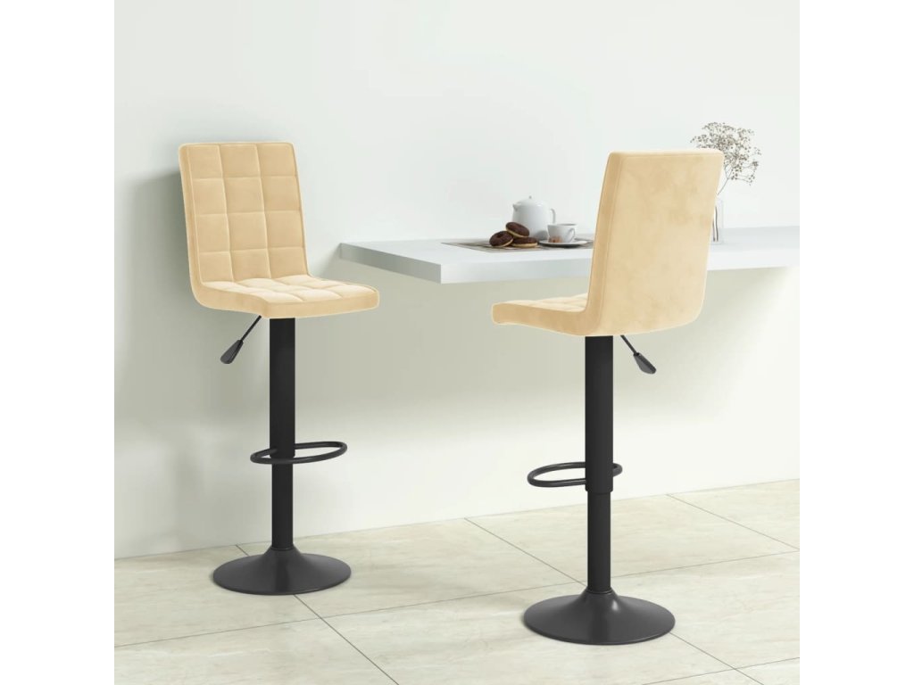 Tyto barové židle jsou čalouněné měkkým sametem, který je příjemný na dotek, a nabízí optimální komfort. Rám z oceli s černým práškovým nástřikem zaručuje mimořádnou odolnost, zatímco vestavěná opěrka na nohy vám zajistí pohodlnější posezení. Výšku židlí snadno upravíte pomocí mechanismu s plynovým pístem. Barové stoličky představují dokonalý doplněk do každého funkčního baru či jídelny. Židle se navíc otáčí o 360 stupňů, což jim dodává skvělou flexibilitu.