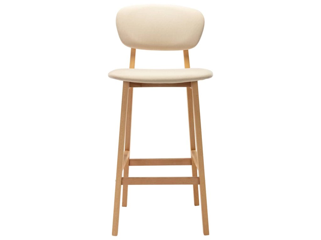 Na těchto barových židlích se sedákem a opěradlem s měkkým textilním čalouněním se velmi pohodlně sedí. Dokonalou stabilitu a dlouhou životnost židlí zajišťují masivní nohy z bukového dřeva. Integrovaná opěrka nohou poskytuje další oporu při posezení.