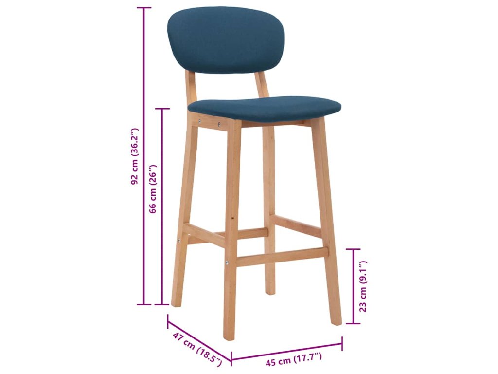 Barové židle 2 ks modré textil 289371