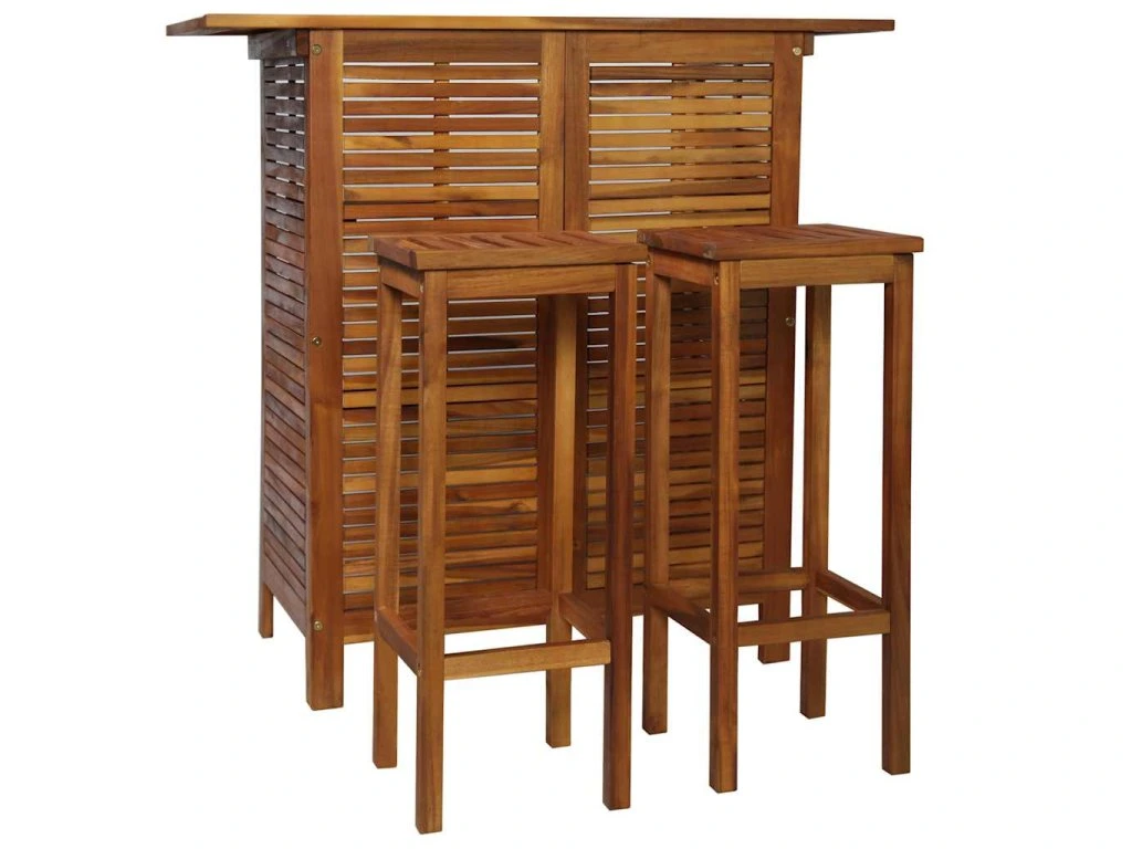 Barový stůl a židle sada 3 kusů z masivního akáciového dřeva 44008