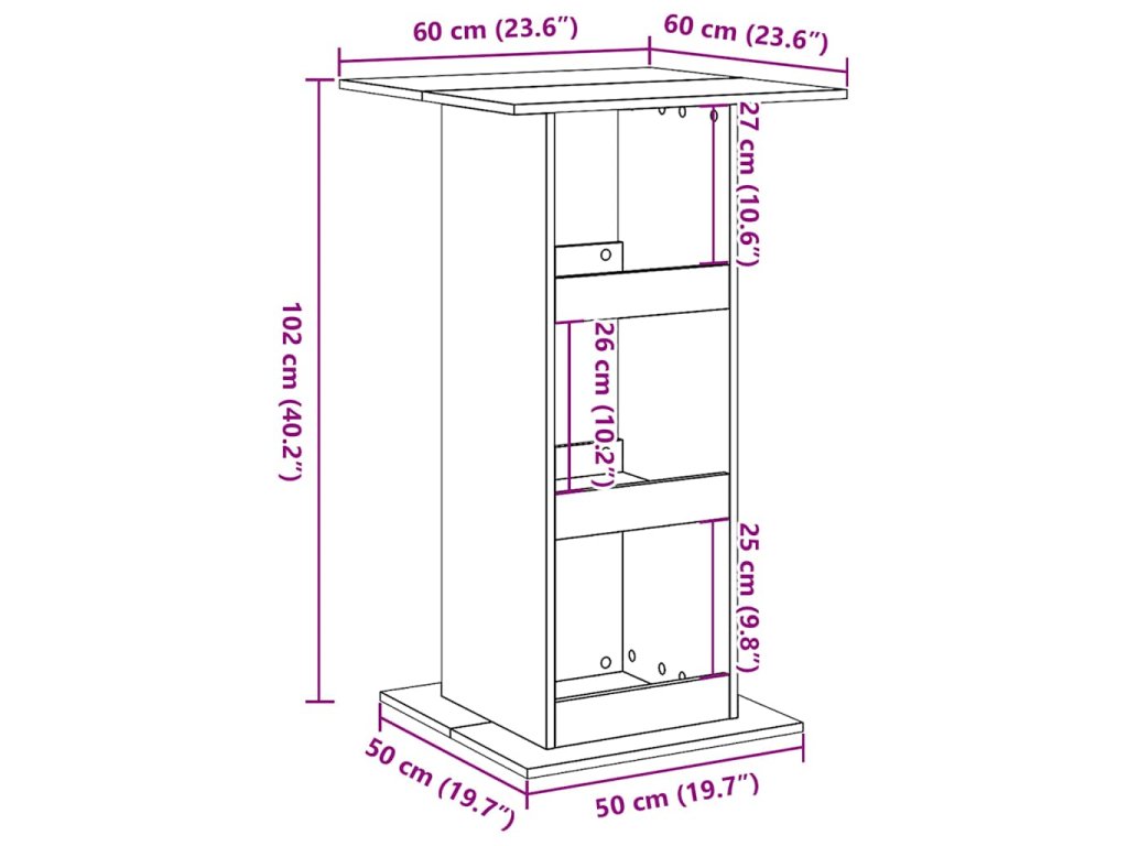- Všestranné použití: Tento vysoký stolek je kompaktní a přizpůsobivý a může sloužit k různým účelům, například jako bistro stolek, odkládací stolek nebo příruční stolek, který se výborně hodí do kuchyní, jídelen a obývacích pokojů.