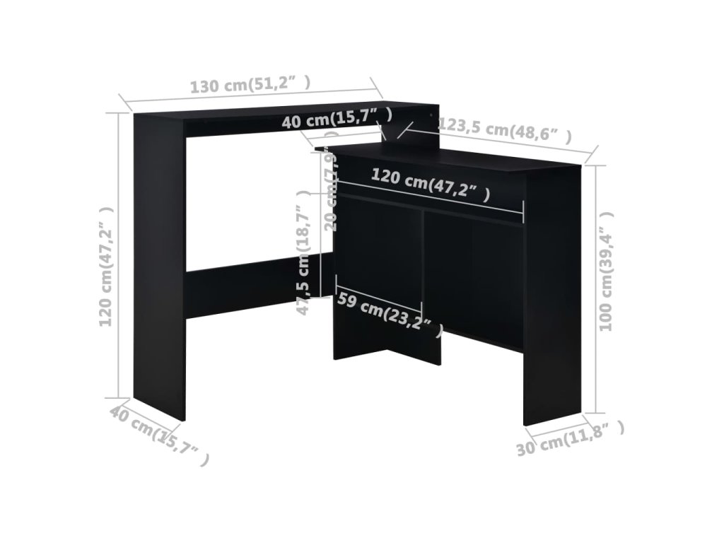 Barový stůl se 2 stolními deskami černý 130 x 40 x 120 cm 280218