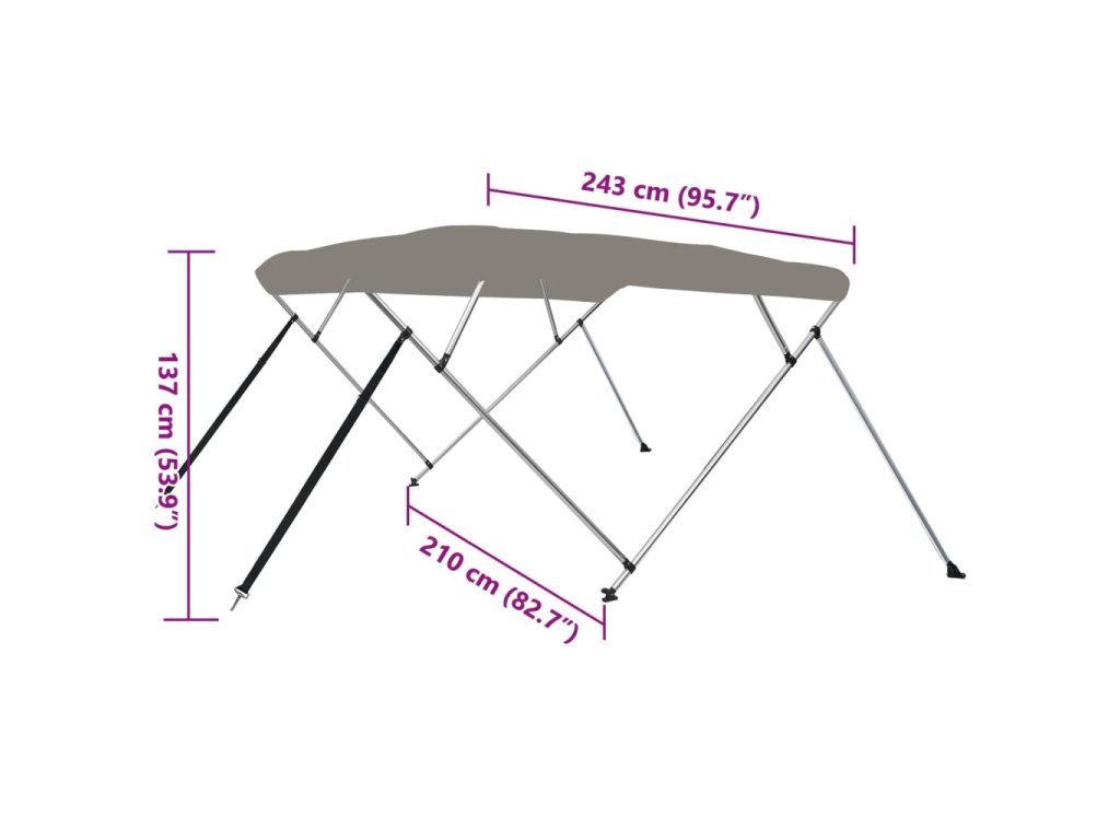 Bimini stříška se 4 oblouky šedá 243x210x137 cm 94808
