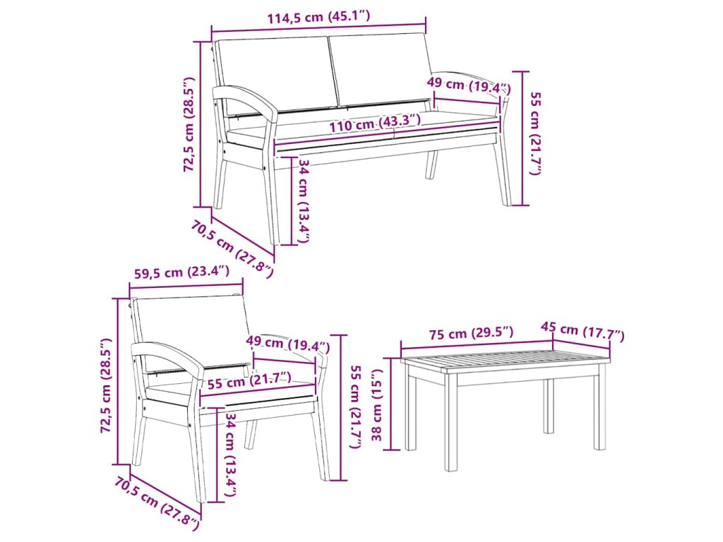 - 2 x Židle: 59.5 x 70.5 x 72.5 cm (D x Š x V)
