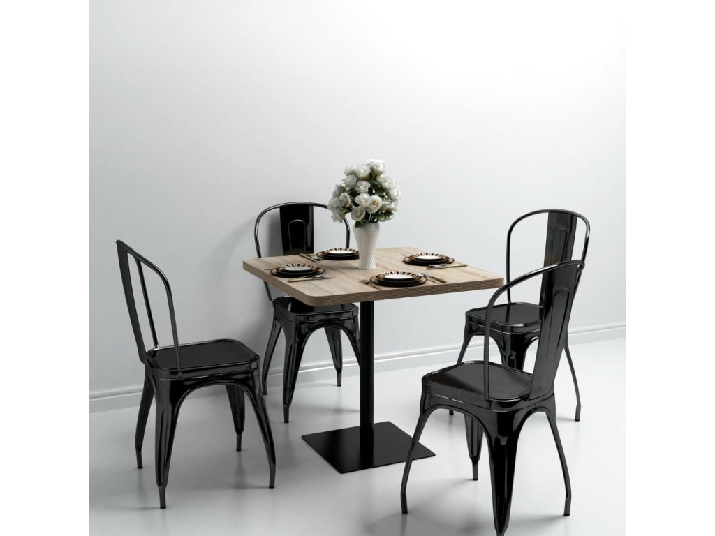 Horní deska stolu je vyrobena z MDF s povrchovou zrnitou úpravou a je podepřena ocelovou nohou a základnou. Snadno se čistí pouze vlhkým hadříkem. Použijte jej jako samotný kus ve svém interiéru, restauraci, kavárně nebo baru.