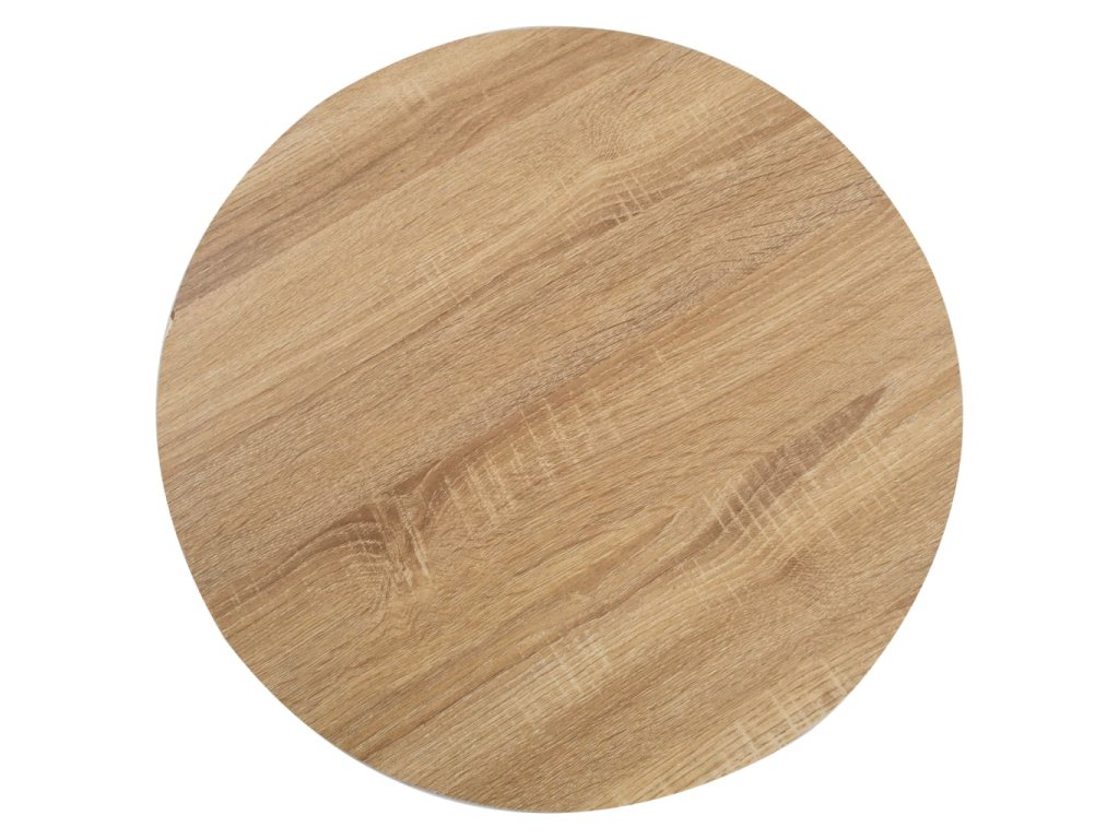Horní deska stolu je vyrobená z MDF se vzorem dřevěné kresby a podpírá ji ocelová noha se základnou. Snadno ji očistíte vlhkým hadříkem. Stolek skvěle využijete jako samostatný kus nábytku ve svém bydlení, ale i v restauraci, kavárně nebo baru.