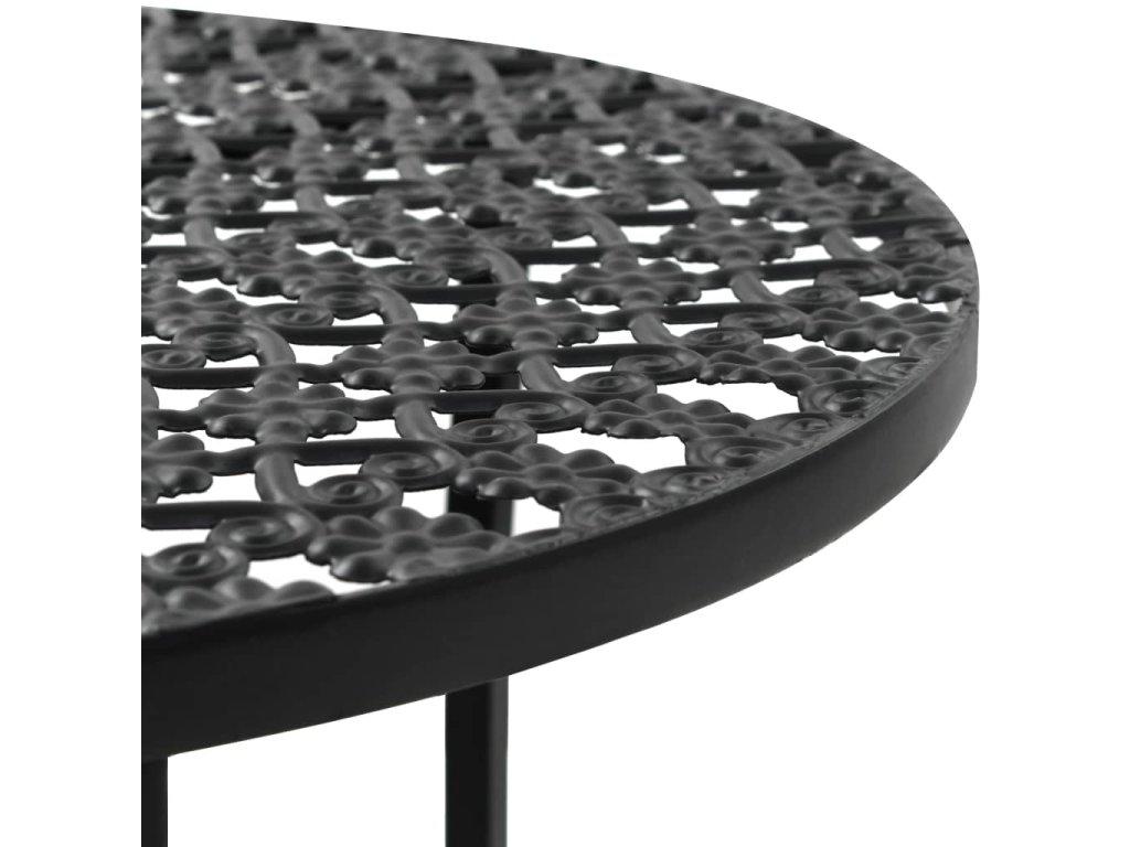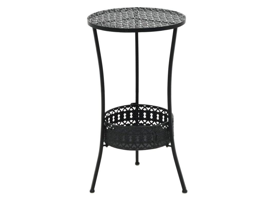 Tento kovový bistro stolek je zdoben krásnými ornamenty, které stolu propůjčují starožitný vzhled a upoutají pozornost v každém pokoji. Disponuje košíkem ve spodní části, který poskytuje dodatečný úložný prostor. Sestavení výrobku je snadné.