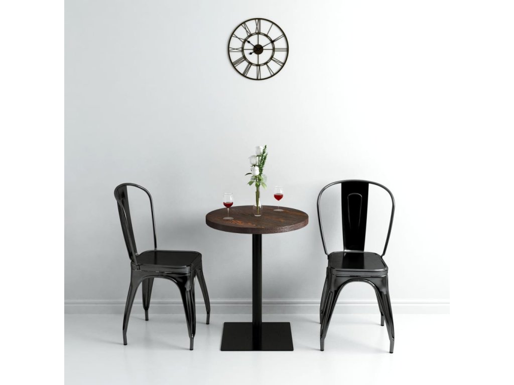 Horní deska stolu je vyrobena z MDF s povrchovou zrnitou úpravou a je podepřena ocelovou nohou a základnou. Snadno se čistí pouze vlhkým hadříkem. Použijte jej jako samotný kus ve svém interiéru, restauraci, kavárně nebo baru.
