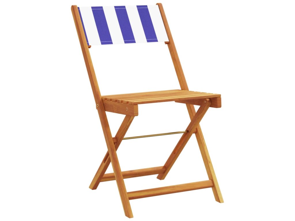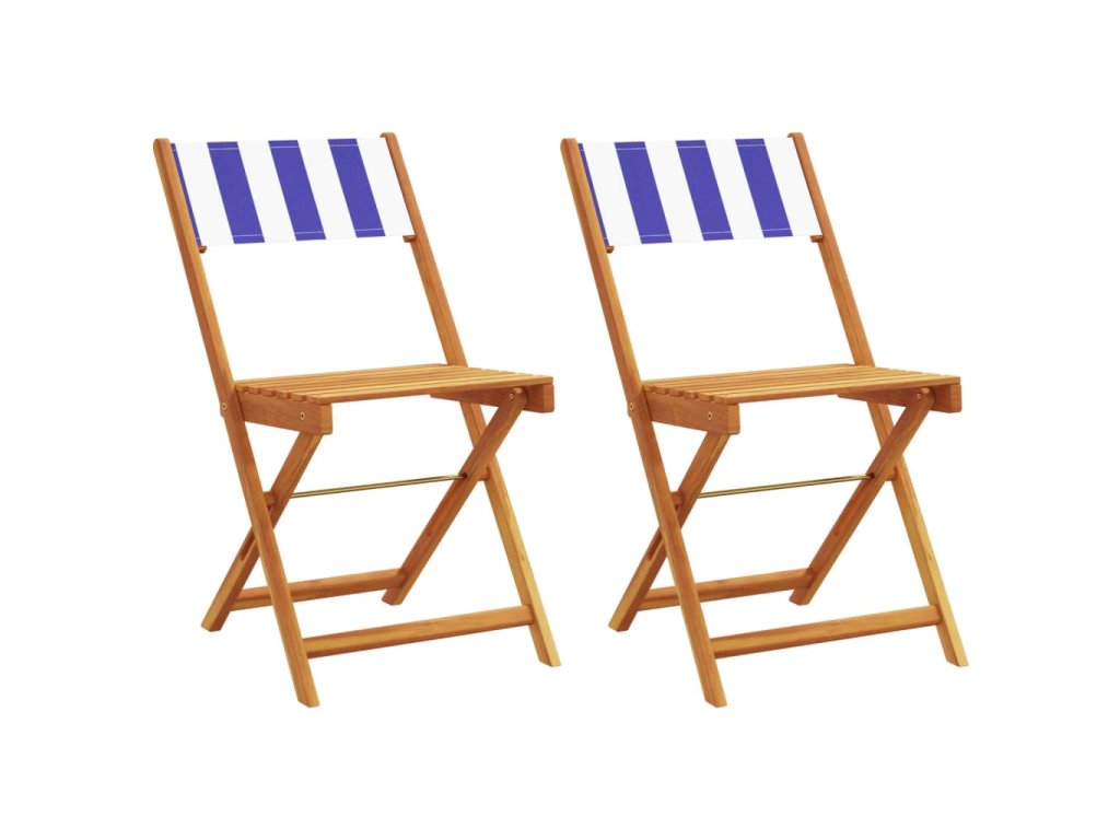 Bistro židle 2 ks modré a bílé masivní akáciové dřevo a textil 367686