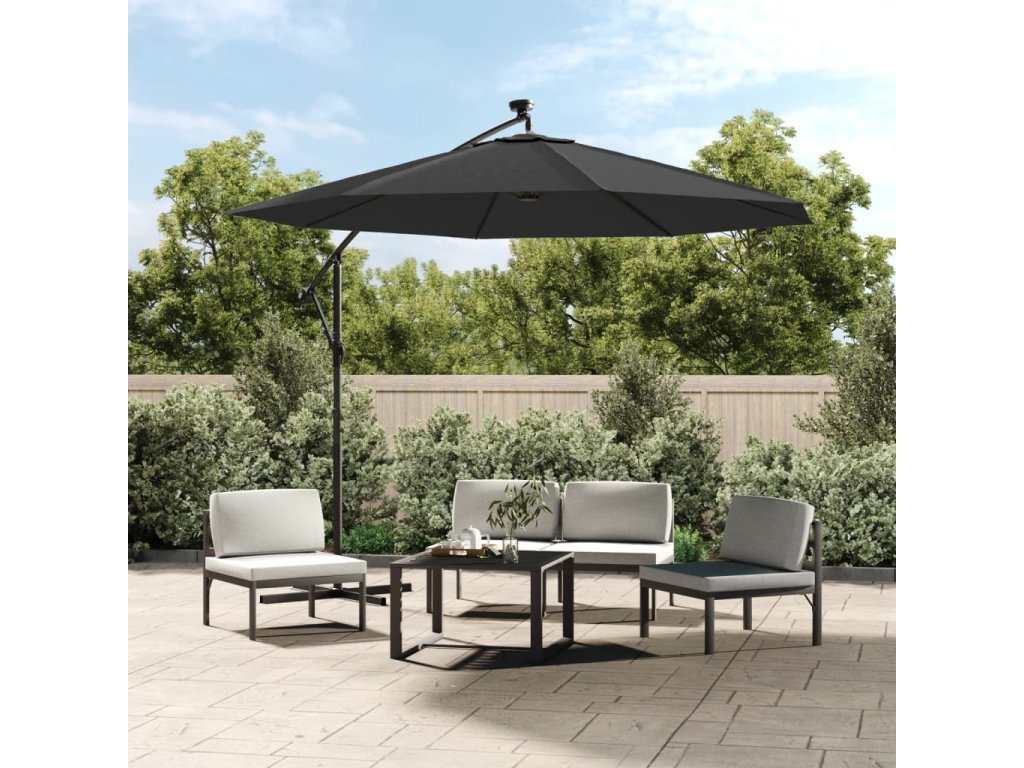 Boční zahradní slunečník s LED a ocelovou tyčí 300 cm antracit 44521
