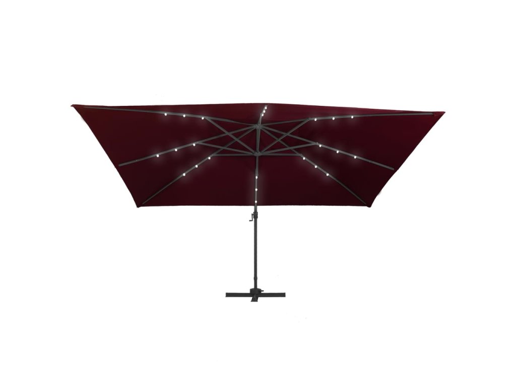 Boční zahradní slunečník s LED osvětlením bordó 400 x 300 cm 312318