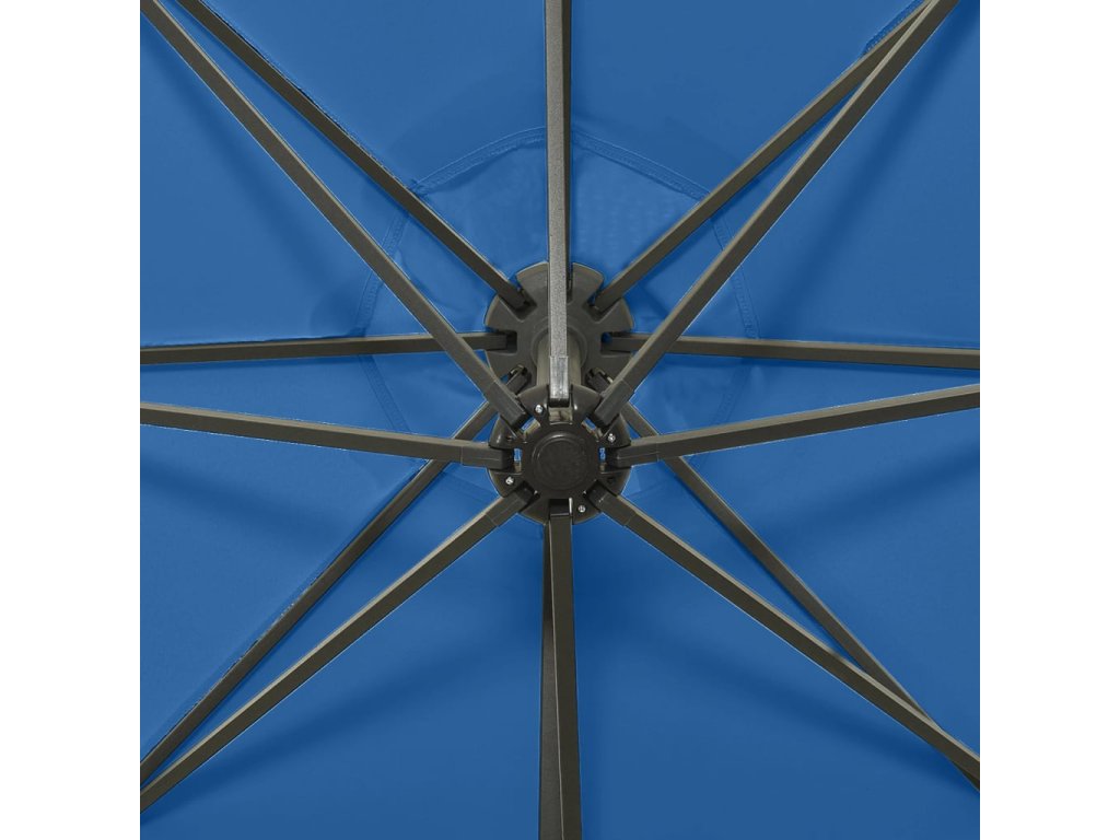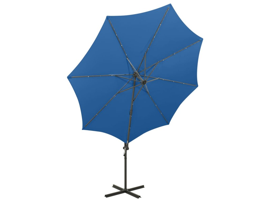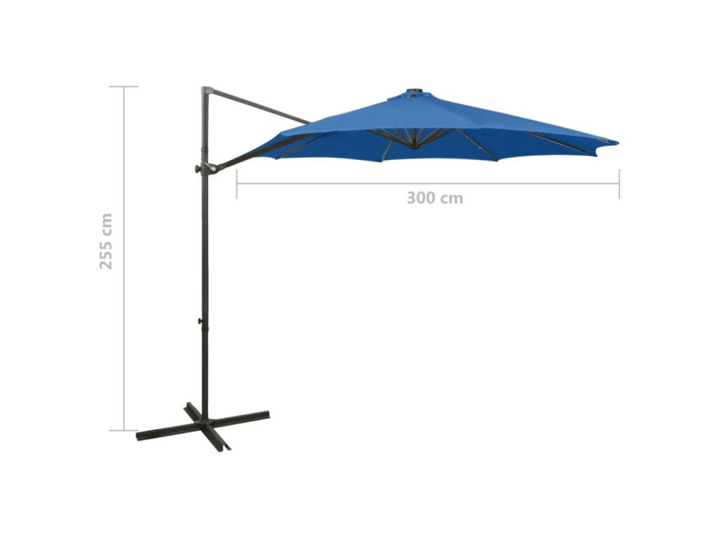 Boční zahradní slunečník s tyčí a LED azurově modrý 300 cm 312341