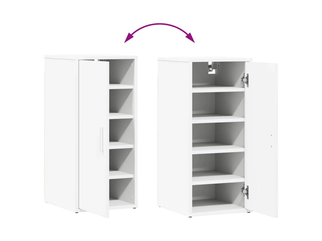 Botník je odolný a robustní s dlouhou životností. Jeho jednoduchý design krásně zapadne do vašeho stávajícího bydlení. Regál na boty má 5 polic, které nabízí spoustu prostoru pro přehledné uložení bot. Botník můžete postavit na zem nebo ho pověsit na zeď. Dvířka, která lze otevírat nalevo nebo napravo, chrání vaše boty před prachem a zároveň se postarají, aby nebyly zbytečně na očích. Nábytek se snadno čistí vlhkým hadříkem.