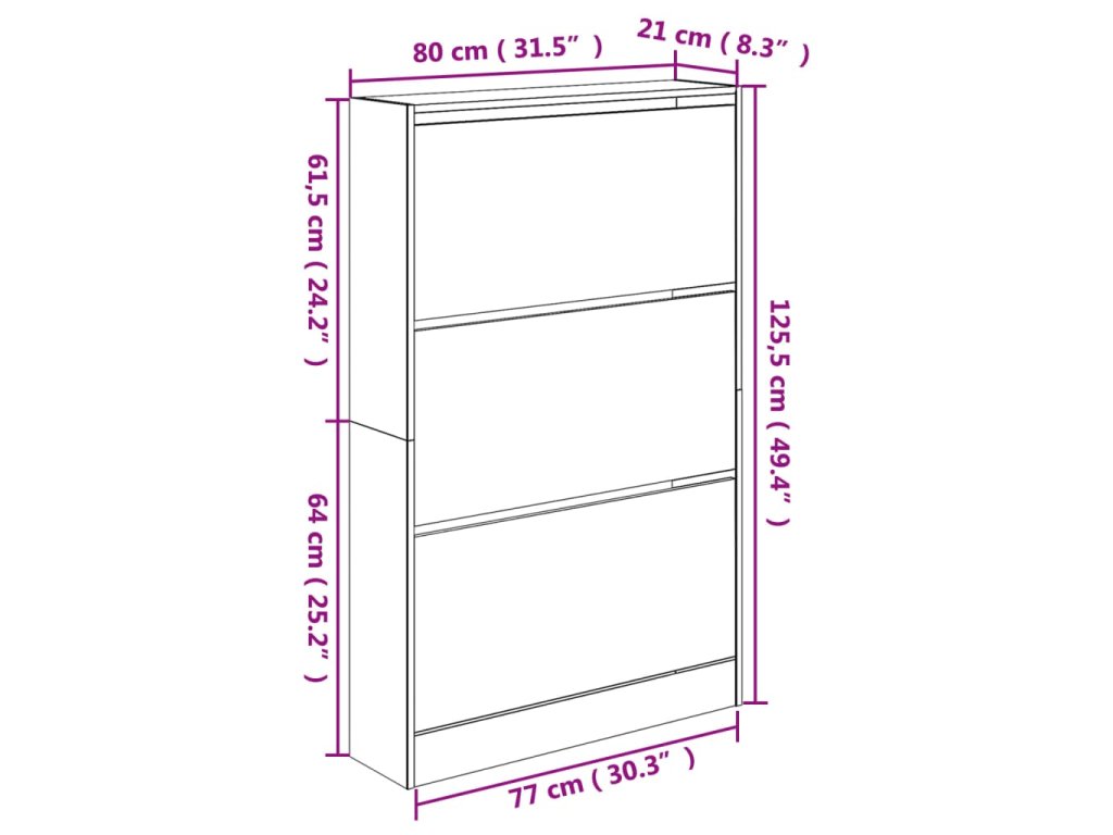 - Spousta úložného prostoru: Tento botník má 3 výklopné zásuvky, poskytuje tedy dostatek prostoru pro přehledné uspořádání bot, kde je budete mít vždy po ruce.