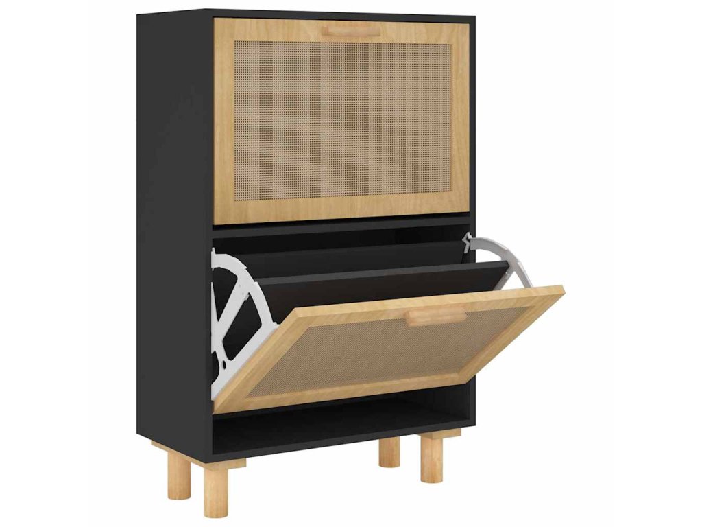 Botník černý 52 x 25 x 80 cm kompozitní dřevo a přírodní ratan 345646
