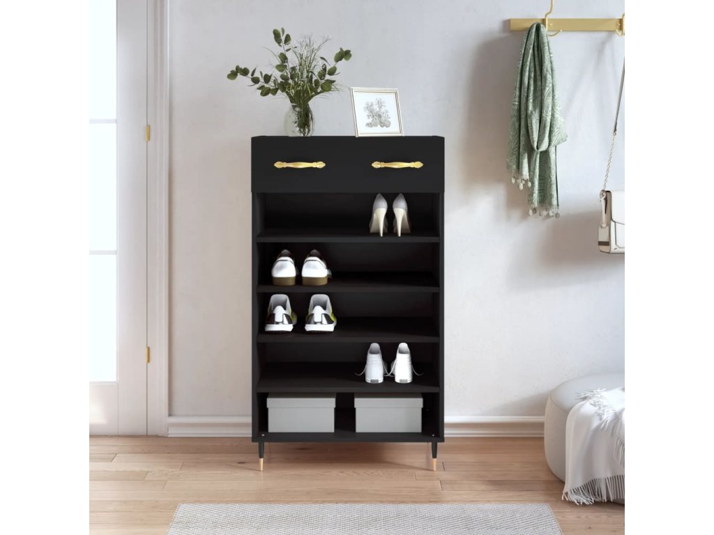 - Spousta úložného prostoru: Botník má 1 zásuvku a 5 otevřených přihrádek, poskytuje tedy spoustu místa na uložení všech typů obuvi.