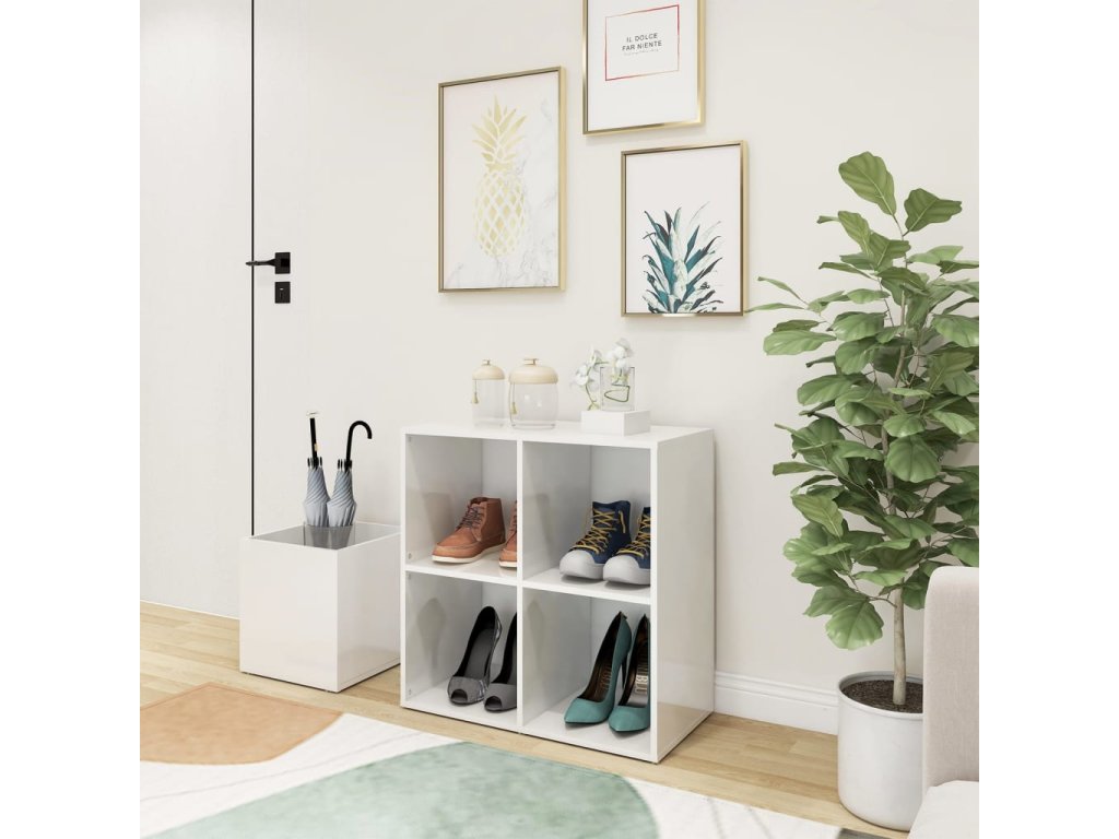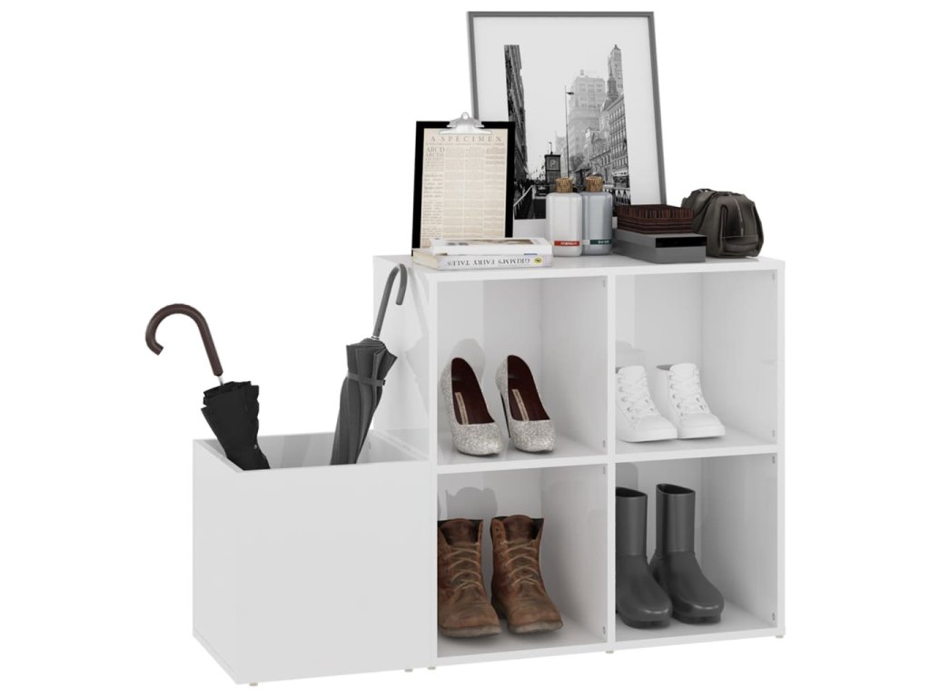 Botník do předsíně bílý lesklý 105x35,5x70 cm kompozitní dřevo 808257
