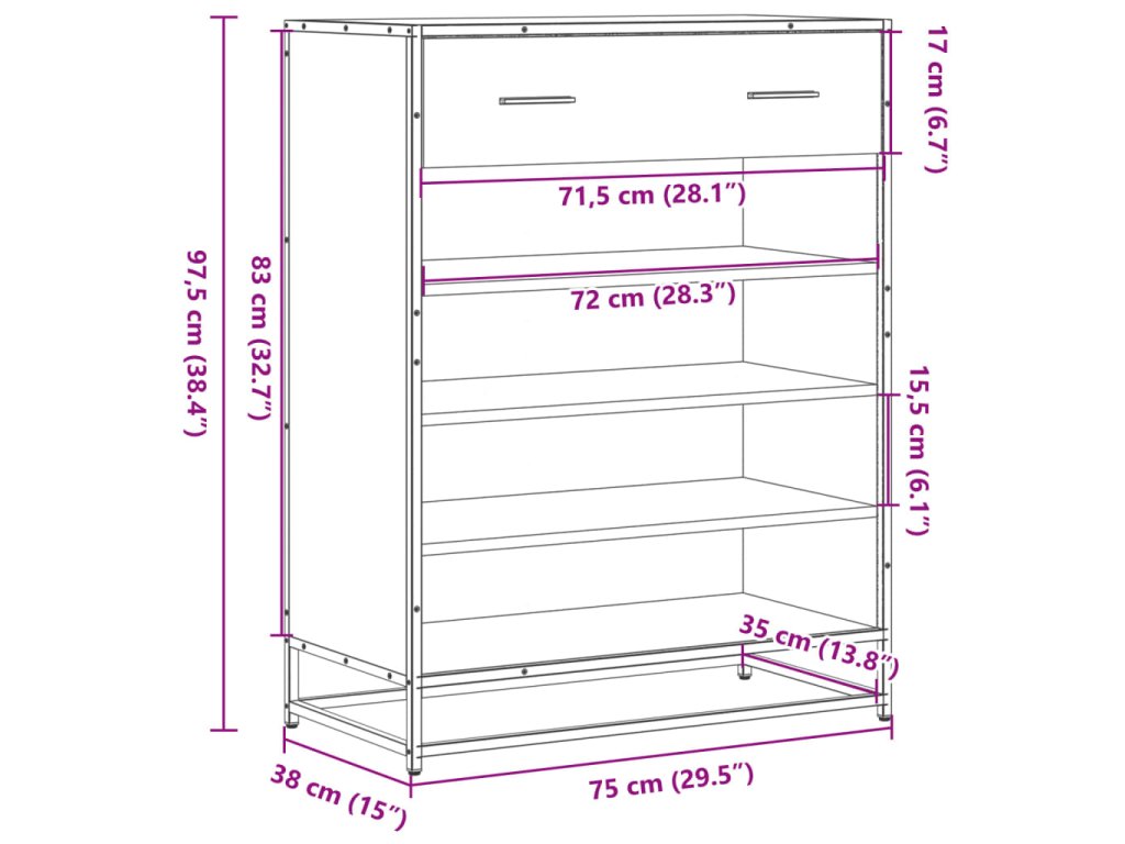 Botník hnědý dub 75 x 38 x 97,5 cm kompozitní dřevo a kov 3300879