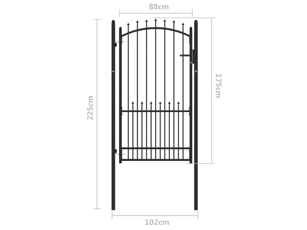 Brána s hroty Černá 100 x 175 cm Práškově lakovaná ocel 146401