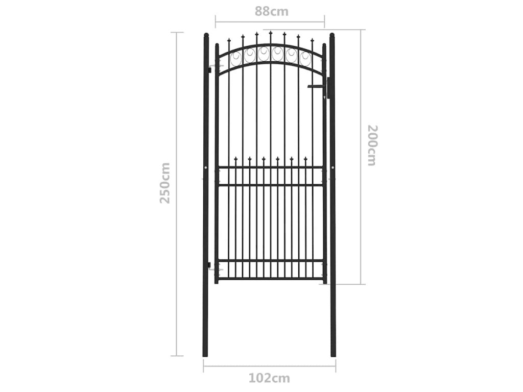 Brána s hroty Černá 100 x 200 cm Práškově lakovaná ocel 146392