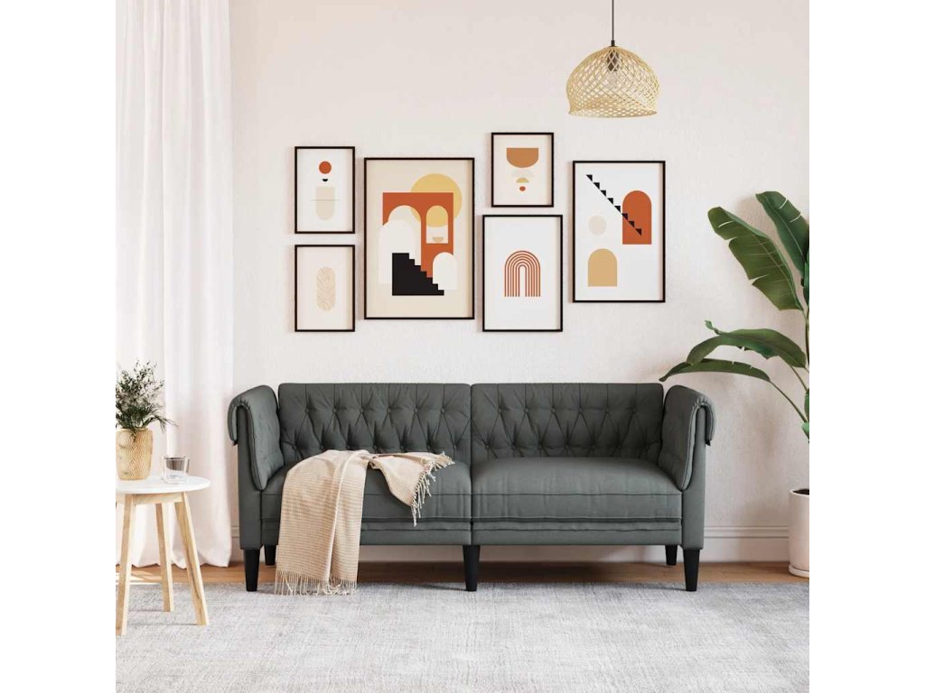 Chesterfield pohovka 2místná tmavě šedá textil 372548