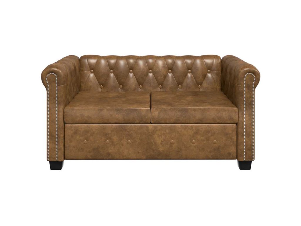 Chesterfield sedačka 2místná umělá kůže hnědá 243619