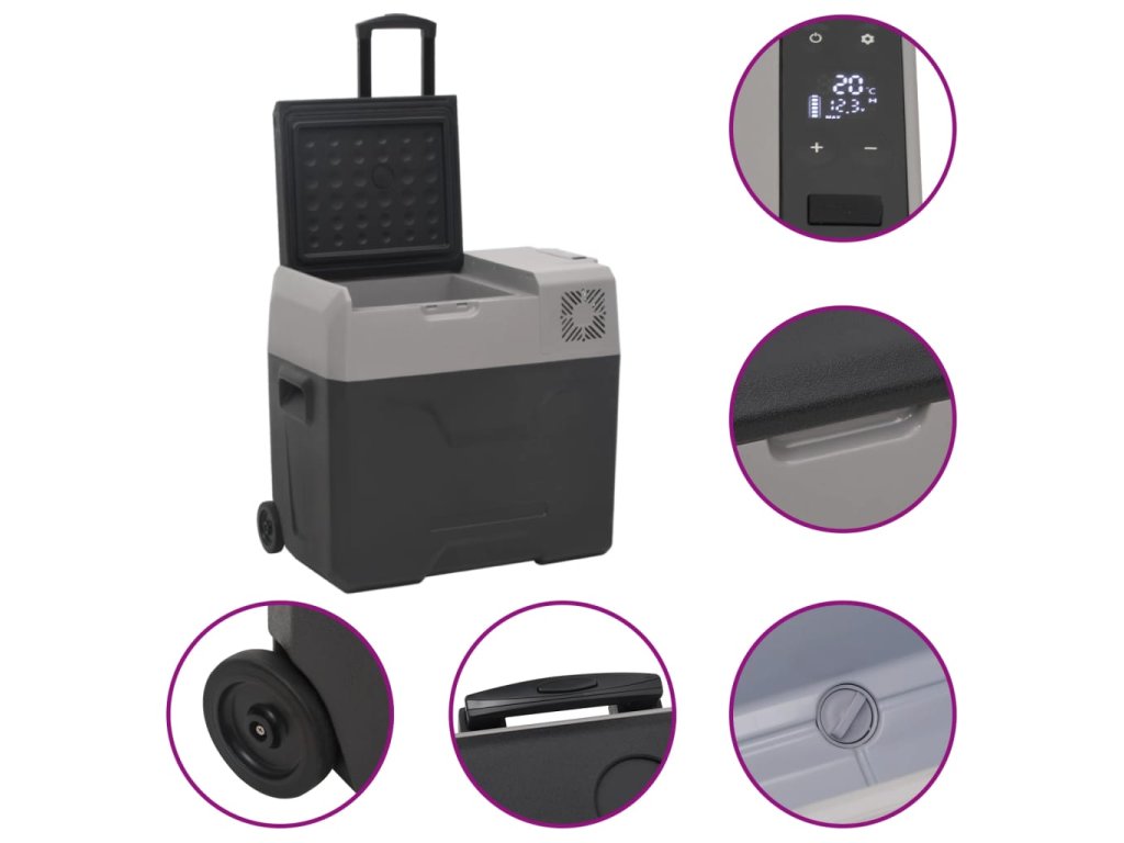 • Přenosné provedení: Chladicí box do auta lze pomocí teleskopické rukojeti a koleček snadno přemisťovat. Je to ideální vybavení na festivaly, výlety, pikniky a kempování.