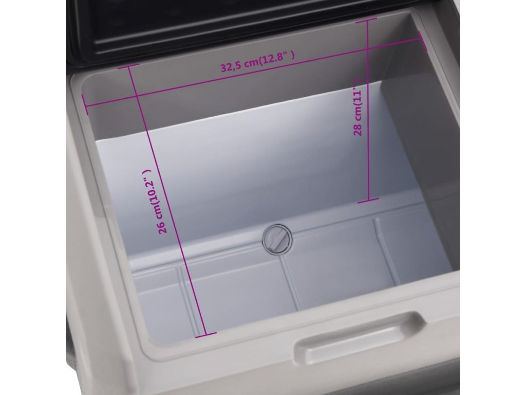 - Velký objem: Chladicí box má velký úložný prostor, který poskytuje dostatek místa pro uložení nápojů, ovoce, zeleniny, zmrzliny a masa.
