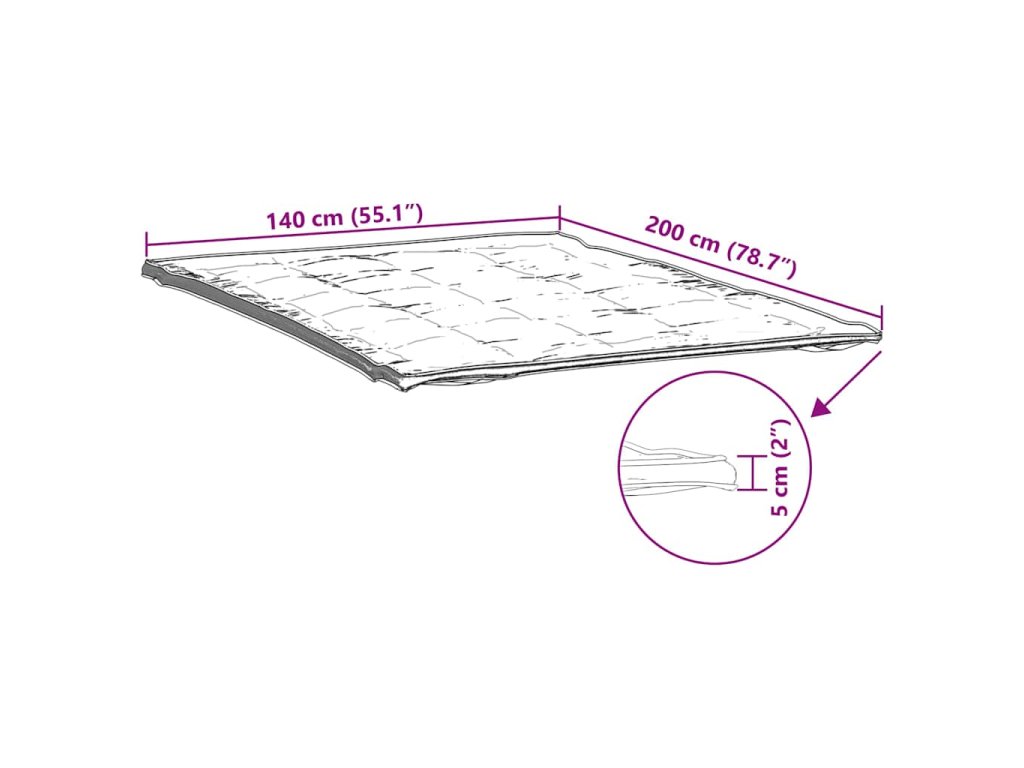 - Rozměry: 140 x 200 x 5 cm (Š x D x T)