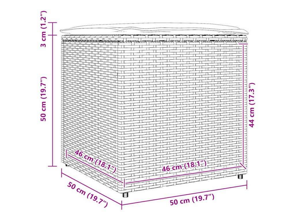 Cushion box s úložištěm Černá 50 x 50 x 50 cm polyratan 365408