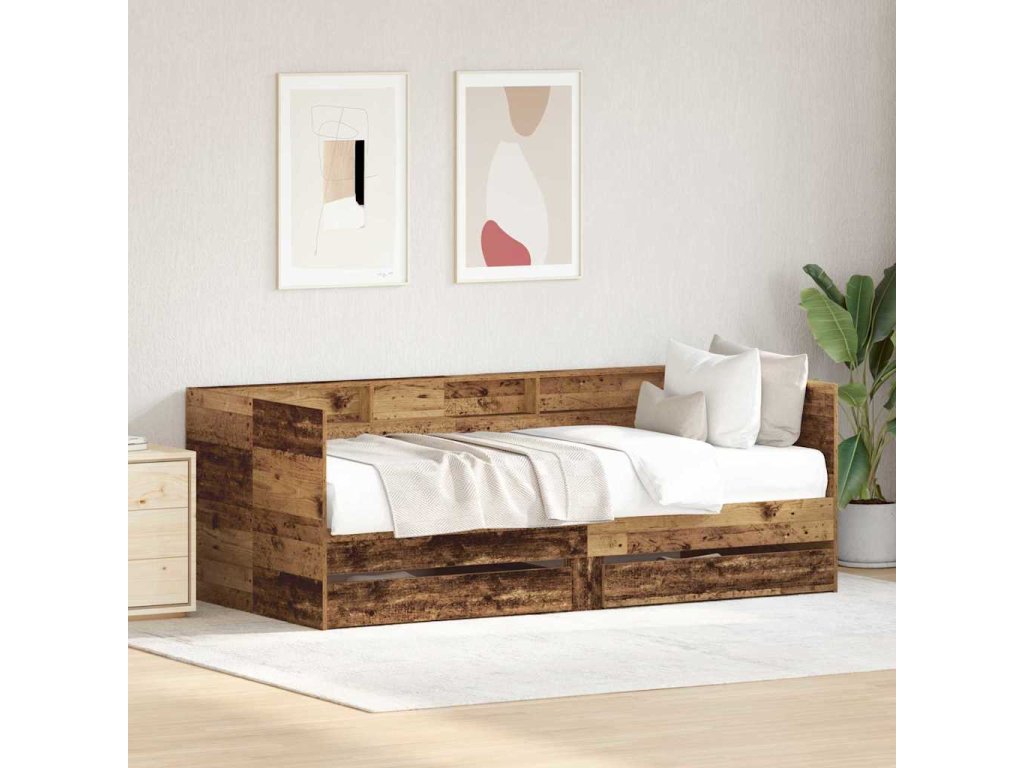 Toto rustikální denní lůžko z inženýrského dřeva má zásuvky a skvěle zapadá do moderních prostor. Jeho jednoduché linie a minimální design jsou ideální pro každou ložnici, co preferuje jednoduchost. Může se používat jako pohovka během dne a jako pohodlná postel v noci - perfektní pro malé byty. Jeho nenáročný styl a pevná konstrukce umožňují mnoho možností dekorace, takže si ho můžete přizpůsobit podle sebe.
