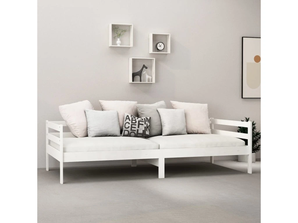 Denní postel s matrací 90 x 200 cm bílá masivní borové dřevo 3083560